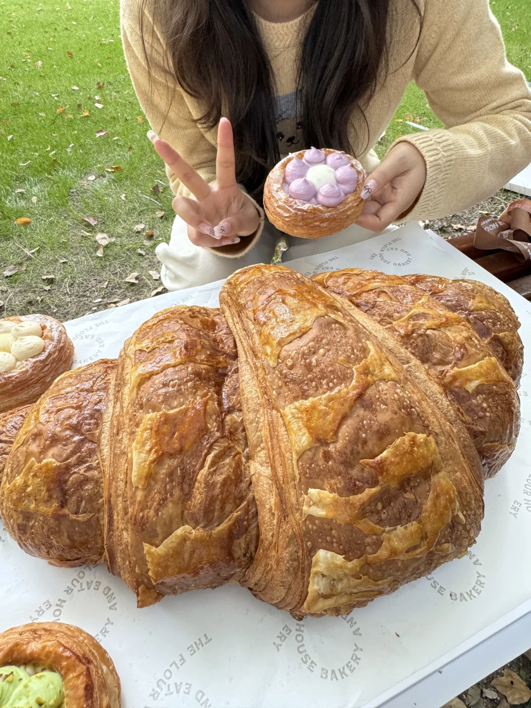 超大的可颂,走在路上回头率真的太高了 可颂非常松软,外面烤的脆脆的 店里还配了蜡烛和蛋糕,当生日蛋糕也很不错