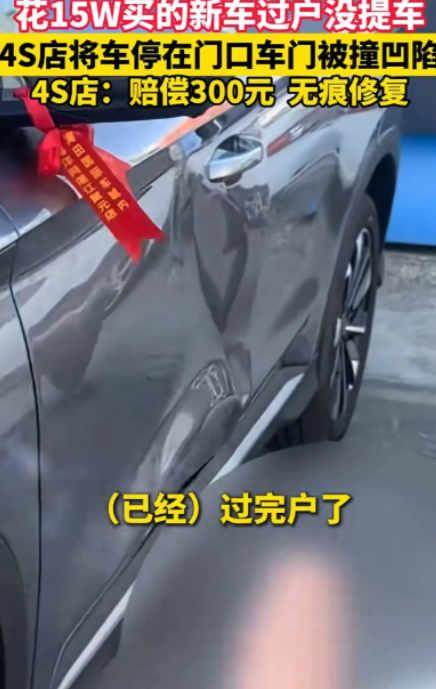 广东湛江,男子花 15 万买的新车刚过户,还没提车。4S店将车停在店门口,车门被撞凹陷。而 4S店就一句话:“要么你起诉我,要么就赔 300 块钱做无痕修复!”网友:4s店看得不长远,现在网络曝光,想买的人会考虑别家店! 蔡先生满怀期待地走进4S店,准备提取他花费15万元购买的新车,然而等待他的不是梦想成真的喜悦,而是一场令人心碎的噩梦。 "先生,非常抱歉,您的新车在店门口被撞了。"4S店销售顾问的声音透过电话传来,如同一盆冷水浇在蔡先生头上。 蔡先生匆忙赶到现场,眼前的景象让他瞬间呆立当场,崭新的车身上赫然出现一个明显的凹陷,犹如一道狰狞的伤疤,刺痛着他的心。 "这...这怎么可能?"蔡先生声音颤抖,"我的车还没提,怎么就被撞了?" 4S店经理面无表情地回应:"车子已经过户到您名下了,我们只负责临时保管,这次意外我们最多赔偿300元,做个无痕修复。" 蔡先生难以置信:"300元?这么大的凹陷,300元能修好吗?" 经理冷冷地说:"要么接受这个方案,要么您就去起诉我们吧。" 这番对话在网上迅速传播,引发了广泛讨论,有网友指出:"4S店这种做法太不负责任了,明显是想推卸责任。" 也有人持不同观点:"车子已经过户,法律上确实属于车主了。4S店只需承担保管不力的责任。" 然而法律专家指出,根据《民法典》规定,虽然车辆已过户,但未实际交付,4S店仍需承担主要责任,《消费者权益保护法》也赋予了消费者退货的权利。 面对4S店的强硬态度,蔡先生决定采取行动,他在店门口拉起横幅,上面写着:"新车未提,遭遇撞击,4S店只赔300元!" 这一幕引来不少路人驻足观看,有人拍照发到社交媒体,事件迅速发酵。 当地媒体闻讯赶来采访,蔡先生向记者诉说了自己的遭遇。 "我辛辛苦苦攒了好几年的钱买这辆车,就是想给家人一个惊喜。谁知道还没开回家,就遇到这种事。"蔡先生哽咽着说。 而4S店面对舆论压力,态度有所软化,销售经理表示:"我们理解蔡先生的心情,愿意重新协商赔偿方案。" 然而双方就赔偿金额仍未达成一致,蔡先生坚持要求4S店承担全部修理费用或者退车。 而4S店则表示,愿意提高赔偿金额,但不接受全额赔偿或退车。 随着时间推移这起事件引发了人们对汽车销售行业规范的思考,有业内人士指出:"4S店应该建立更完善的交车流程,加强对已售未提车辆的保护措施。" 消费者权益保护组织也呼吁:"相关部门应该出台更严格的管理规定,保障消费者的合法权益。" 目前蔡先生与4S店的纠纷仍在继续,这起事件不仅是一个普通消费者的维权之路,更折射出汽车销售行业存在的诸多问题。 它提醒我们在追求梦想座驾的同时,也要提高维权意识,保护自己的合法权益。 对此您有什么看法?可以在评论区留言讨论!!
