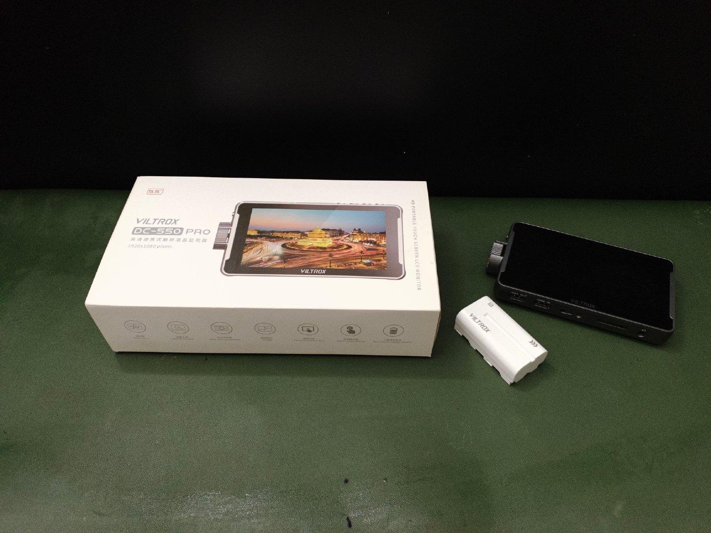 唯卓仕的监视器,dc550pro,这个屏幕色彩和亮度都非常不错,带遮光罩,送电池,660出