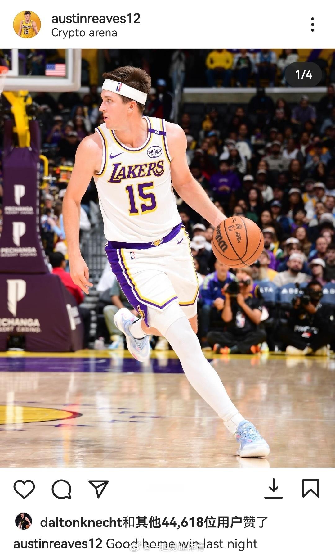 湖人赢球之后里弗斯也更新了微博!写到昨晚主场赢一把