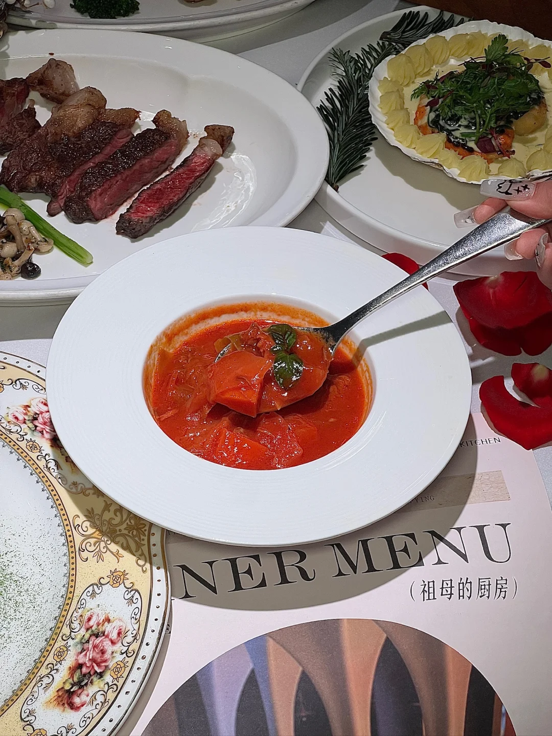 还给布置桌面惊喜 玫瑰花瓣铺满餐桌 菜品摆放在上面真的好有感觉 吃下这一口烟火气 在郑州还不知道去哪约会的姐妹不要错过!!