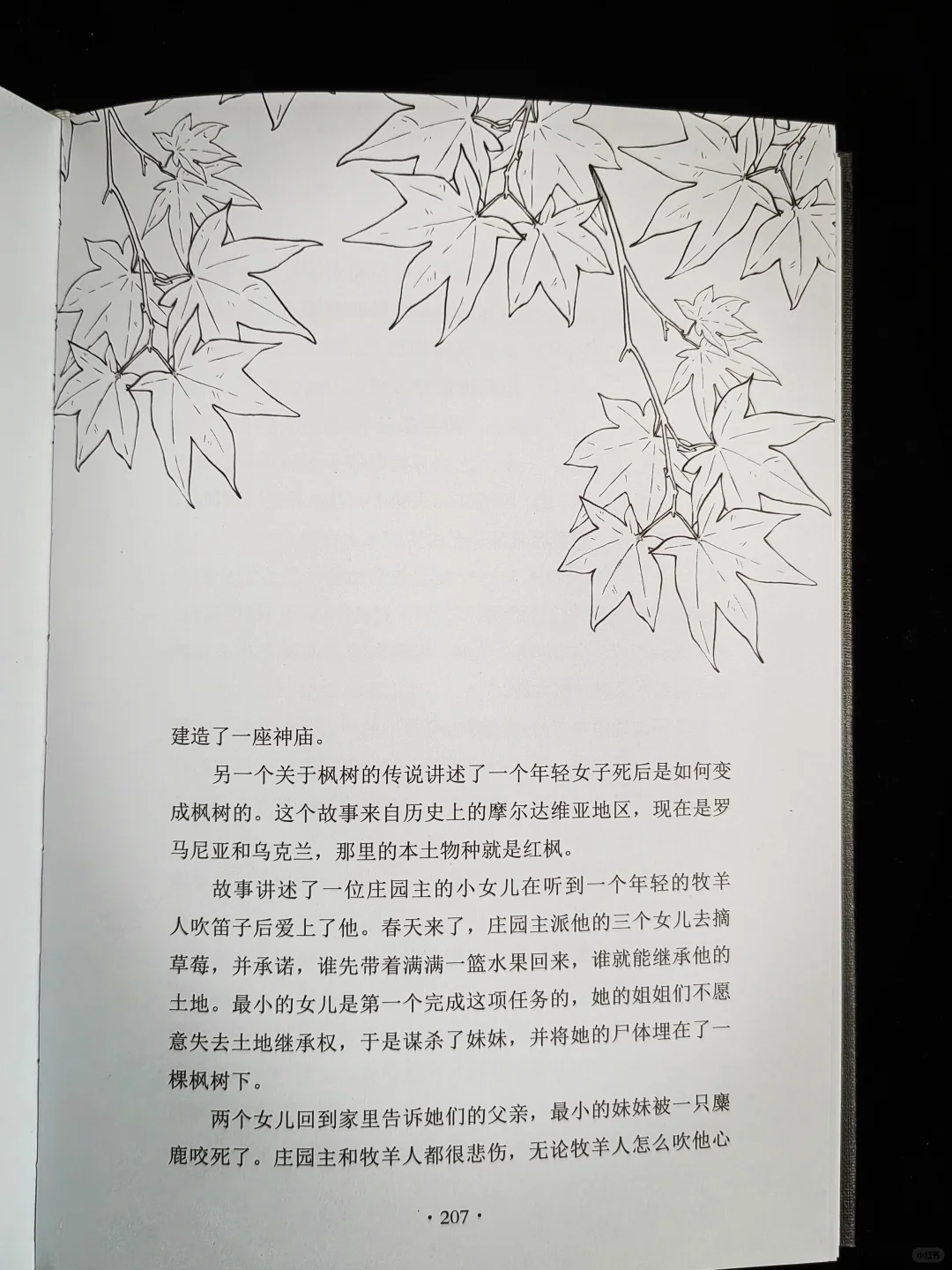 在不同文化语境中,同一种植物也会产生多种民间传说。比如枫树,在古希腊它是被赠与神话中英雄人物的礼物,而在乌克兰地区,枫树背后有这个一个悲伤的故事。