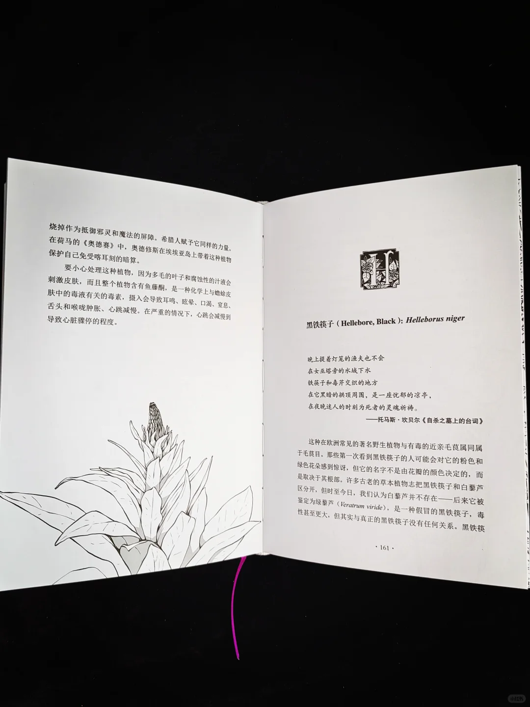 扯远了,毒物图鉴,是一本有毒植物的科普,也是一本有意思的故事。作者从神话、诗歌、民间魔法等等方面带读者走近有毒植物,每一个章节前的诗歌和引文,优雅梦幻,带我们走进植物背后的传奇故事。