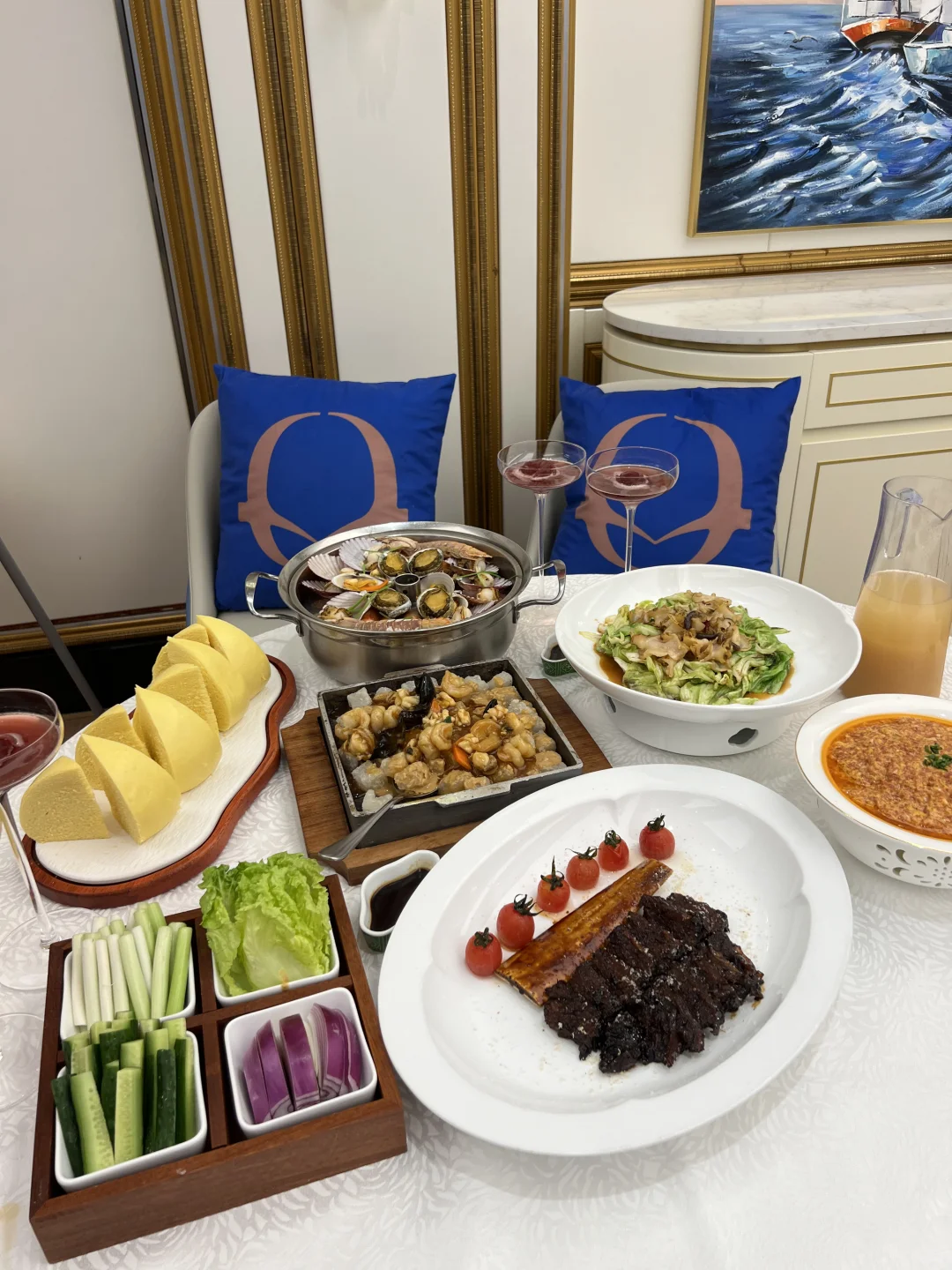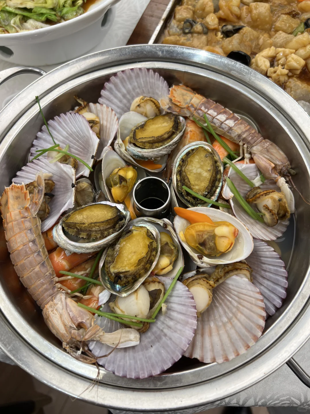 海鲜蒸锅:蒸着吃的海鲜才能吃出来海鲜的原汁原味,一道菜品包含了鲍鱼、虾爬子、大虾、扇贝、黄蚬子、白蚬子,一锅汇聚了海鲜的精华。