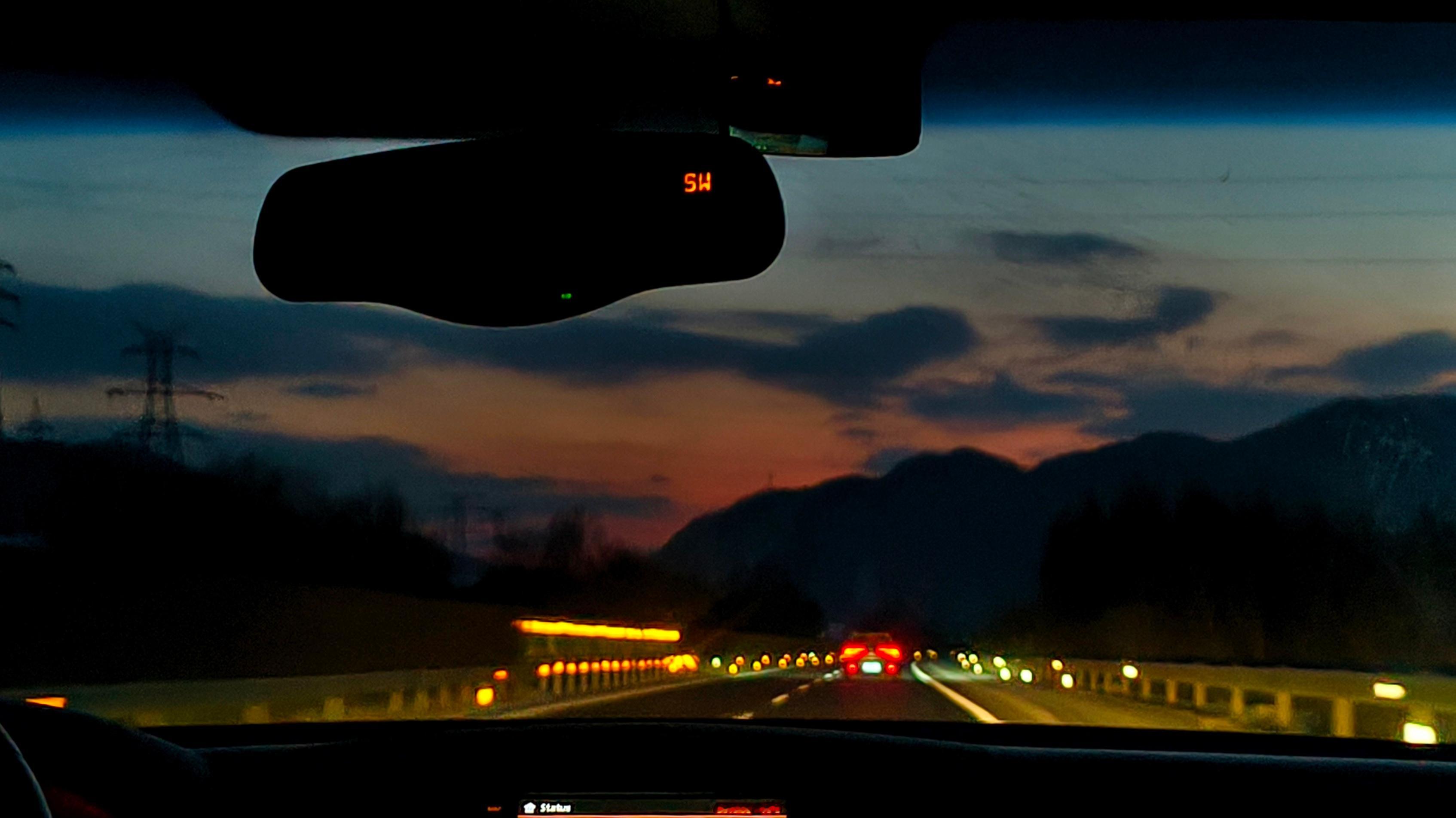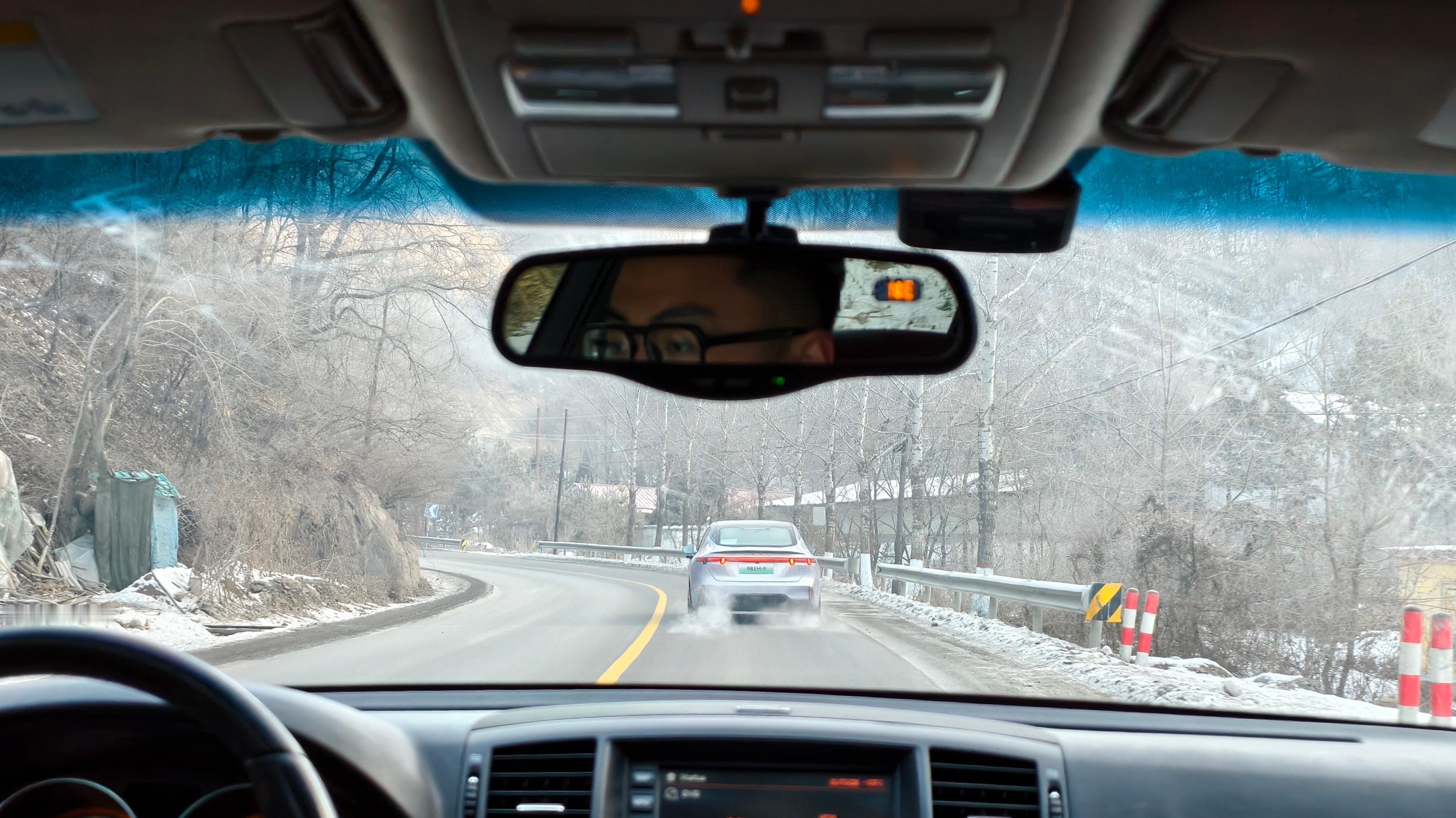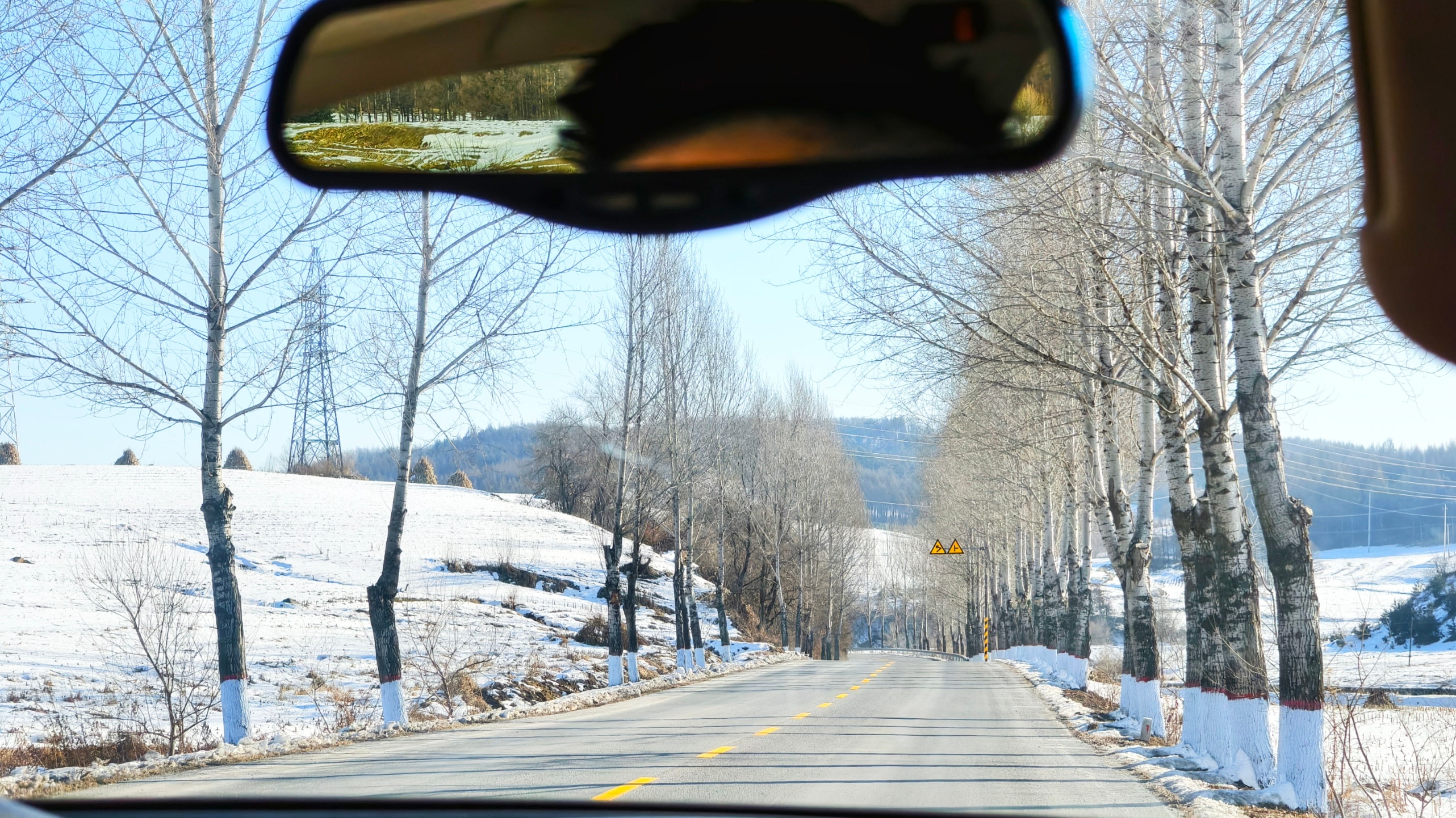 高速上路上能看见光秃秃的山,山上长着光秃秃的树林,像长了胡渣的下巴,其他时候看到的都是一望无际的大平原,心旷神怡。