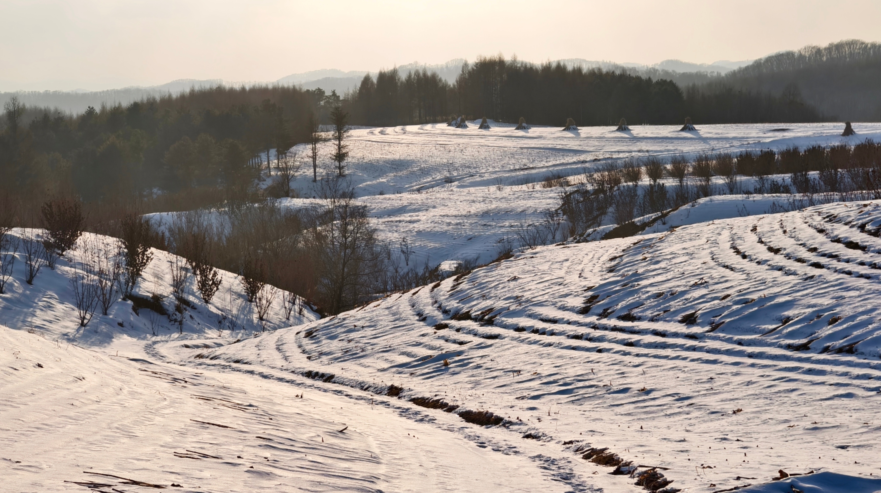 这个季节唯一能看见的的绿色植物是松树,雪和阳光和光秃秃的树,目之所及好像只能看见白色和灰色。但是阳光能把一切变成不同的颜色。早上和中午是冷冷的白色,下午和黄昏是暖暖的橙色。东北的日落不像热带是非常艳丽的那种,但在冰天雪地中足够美丽了。
