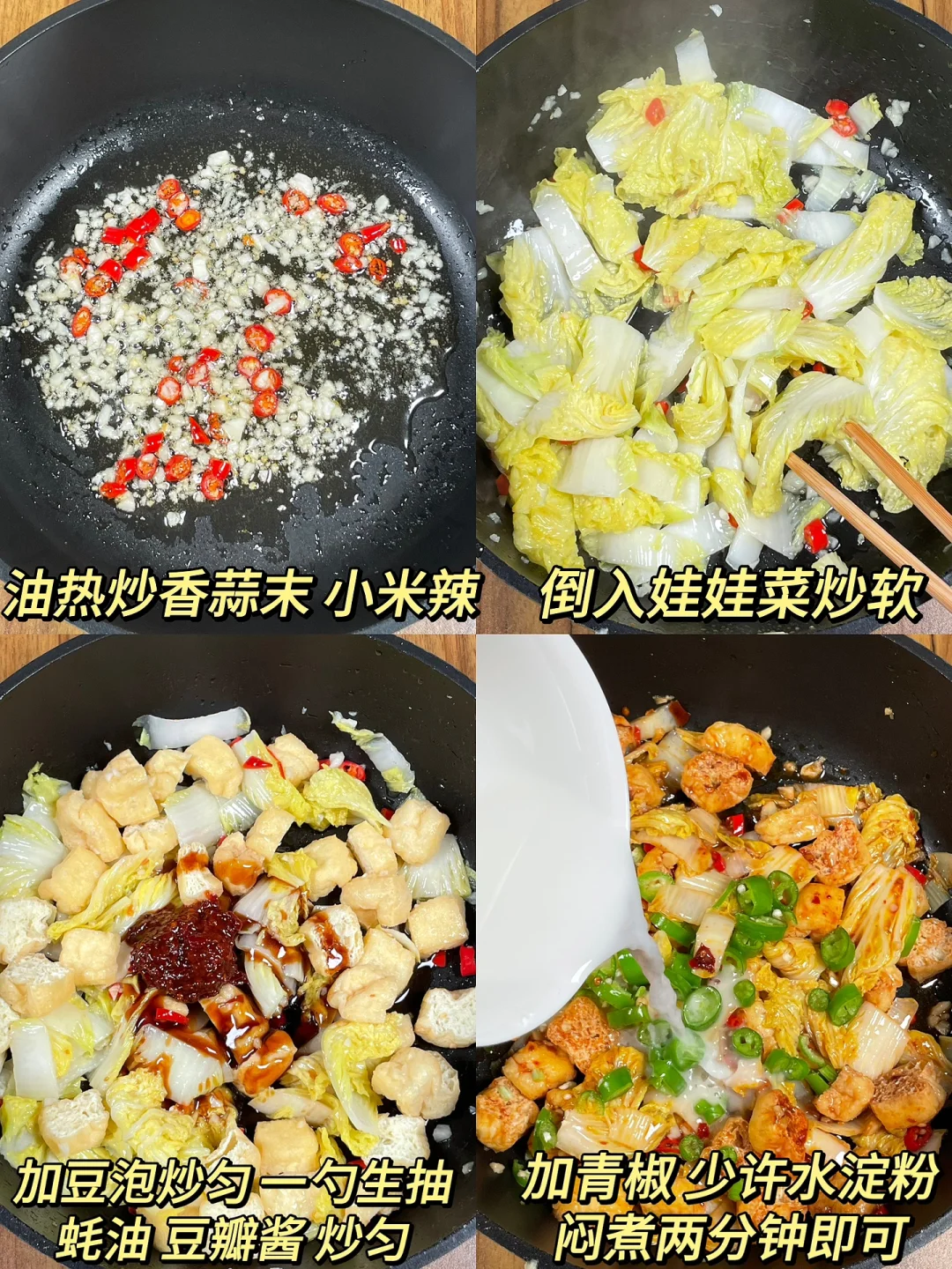 超好吃的娃娃菜焖豆泡!一定要试试!! 娃娃菜脆甜爽口,豆泡鲜香入味,香香辣辣巨好吃!配上米饭香得嘞[色色R]嘎嘎下饭!做法简单不翻车,求你们都去做!! [向右R]做法:如图5️⃣所示!