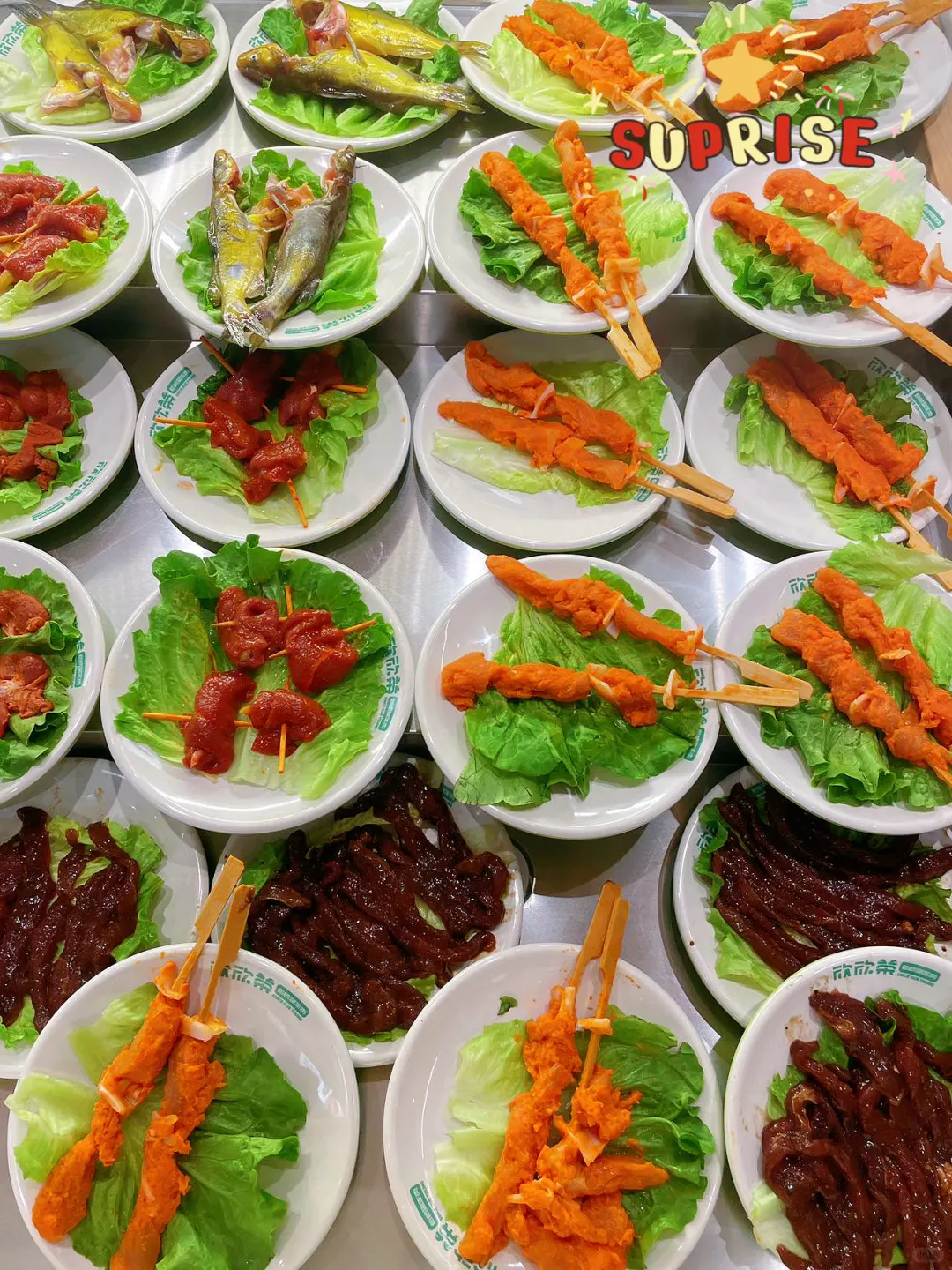 现切大盘羊肉,😍 每一片都厚薄适中,关键是不限量供应,简直是肉食控的天堂!补货还hen及时,放肆炫🏃♂️💨 除开羊肉,还有鱼🐟、鲜嫩多汁的牛肉🥩、牛蛙🐸... 种类繁多,我选择困难症都要犯啦! 吃完肉再来点点心🥧、水果🍉最后再来个冰淇淋🍦或者清爽饮料🥤,完美🎉 赶紧带上你的胃,赶紧来尝,去晚了又要排队了👭👬