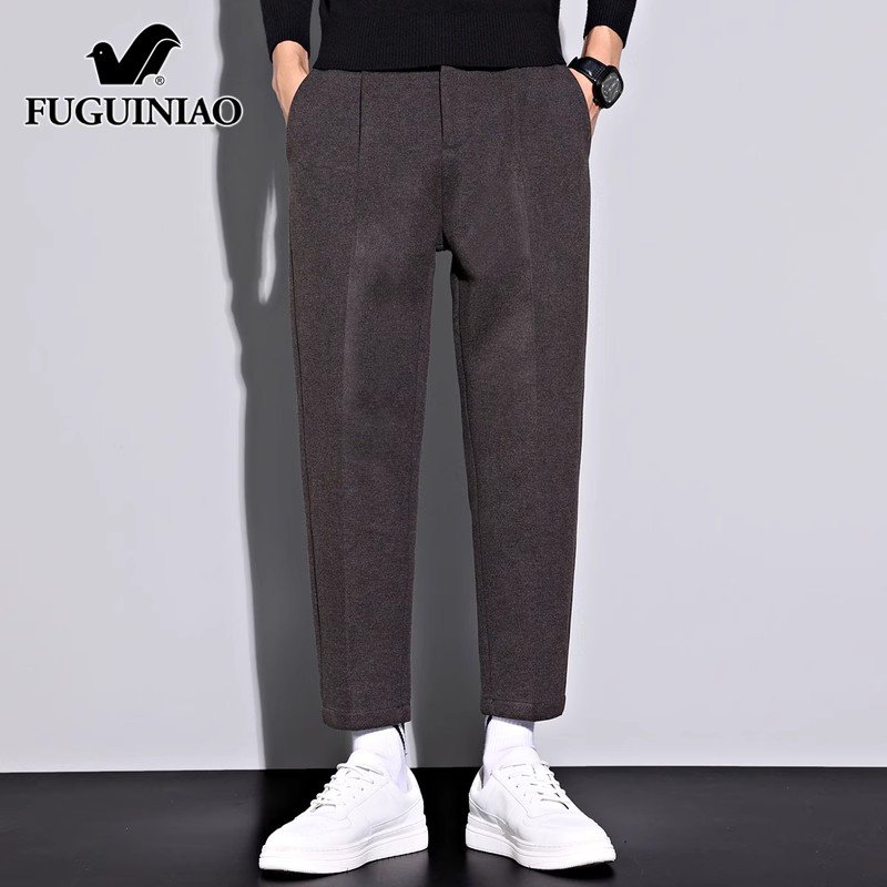 富贵鸟九分休闲裤男士2024年秋冬季新款修身小脚西裤加绒长裤子男