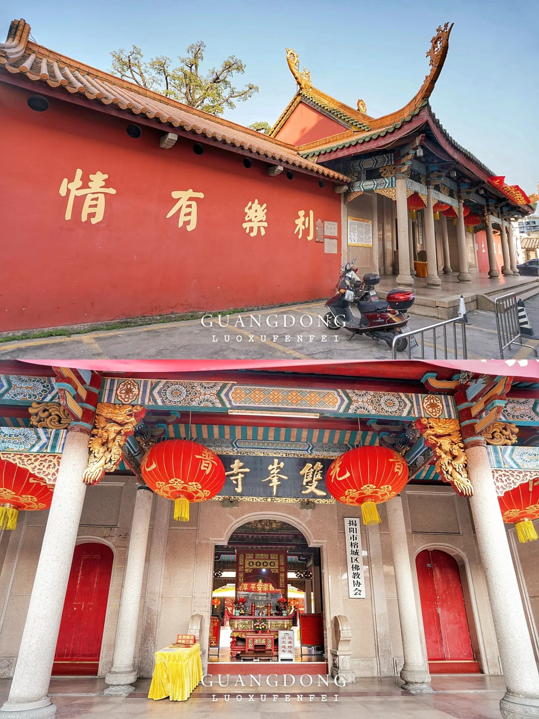 揭阳的双峰寺与潮州的开元寺和潮阳的灵山寺并称潮郡三大名刹,建筑新旧结合,双峰寺的特点就是位置闹中取静、建筑富丽堂皇、夜景灯光璀璨,同时还是揭阳古八景之一“双峰晚钟”的所在地!
