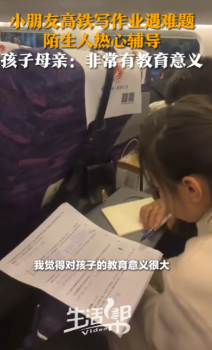 信息来源:生活帮--《小朋友高铁写作业遇难题 陌生人热心辅导 孩子母亲:非常有教育意义》