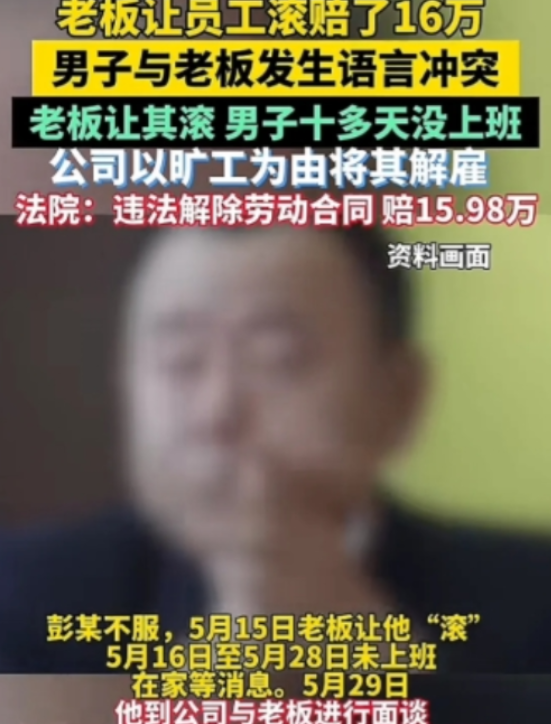 “一句滚值16万!”2020年5月,一男子上班期间顶撞老板,老板怒骂其“滚蛋”,