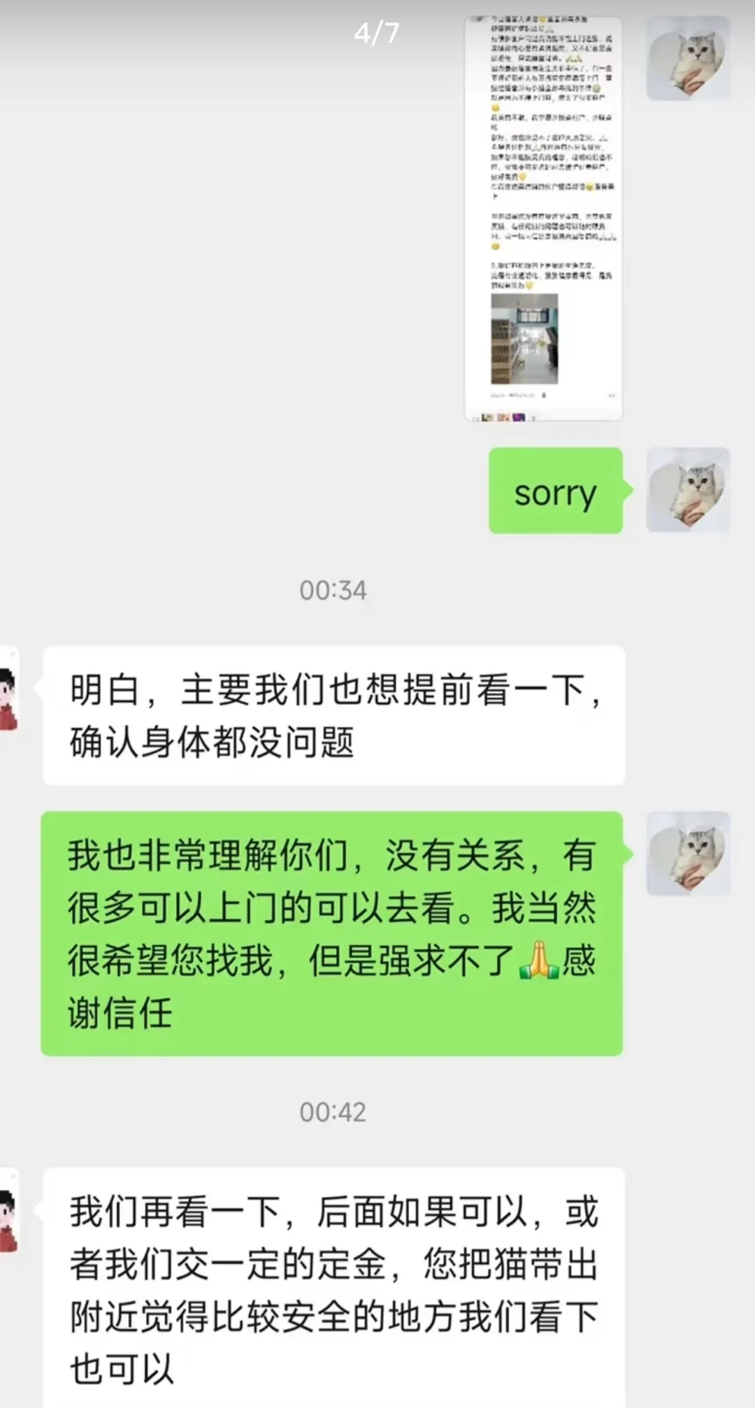 图二是猫舍环境 图三 四 是我拒绝了想上门客户 后面的图是老客户的猫猫返图 这几天猫舍大清洁💛全面消毒杀菌 健康呵护猫咪成长🙏🏻 有很多客户问过我说能不能上门选猫,说实话我内心是有点抗拒的,又不好意思直接拒绝,只能搪塞过去。🙏 因为最近猫舍圈发生太多事情了,有一些不怀好意的人故意携带猫瘟病毒上门,直接把猫舍所有小猫全部毒死的事件😭😭 就是因为不接上门客,流失了很多客户。🙁 我真的不敢,我宁愿少接点客户,少赚点钱 都好,我也承受不了这种灭顶之灾。🙏🏻 希望各位理解🙏🏻而且选猫也是看缘分,如果您不能接受我的理念,证明咱们也不搭,我需要花多点时间去维护好老客户,做好售后💛 在我这边买过猫的客户懂得都懂😁服务至上 当然如果您没有在我这里买猫,去其他家买猫,有任何猫的问题也可以随时跟我问,我一视同仁还是很愿意回复的哈🙏🏻🙏🏻😁 乐观好客积极向上是我的生活态度。 流程专业透明化,猫猫健康看得见,是我的服务宗旨💛