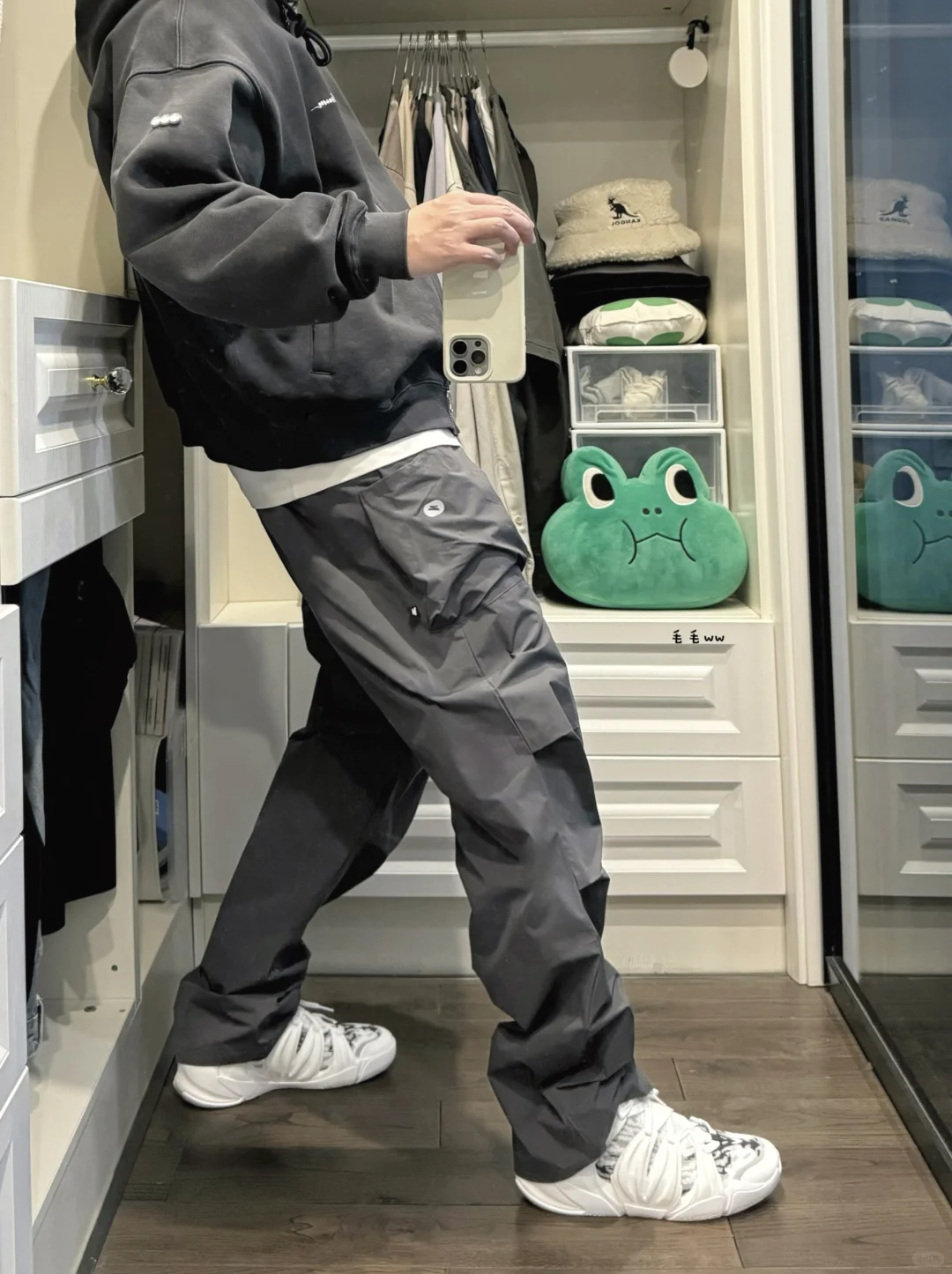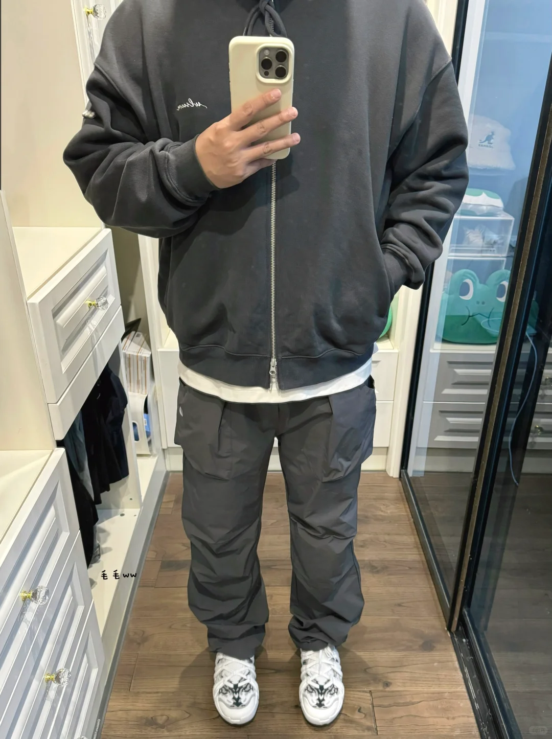 -青灰色系锁住了,低调同时又隐隐透露出高级感,比花灰更深,又区别于黑色 . -日常高克重的拉链帽衫,机能面料的篮球长裤,自然褶皱与堆叠感更适合球鞋 . —————— . ✏️本人178cm75kg 球鞋尺码265mm(正常EU42) . 💭以上均为我个人观点,不喜勿喷,欢迎讨论。