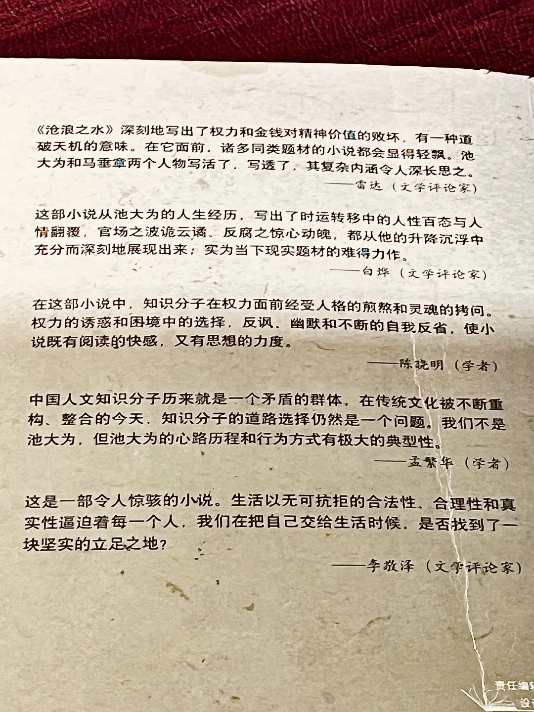 这本《沧浪之水》写的是刚毕业进入体制的大学生,保留着知识分子的清高,被现实无情的摧残,最终自我黑化后,攀上高位。