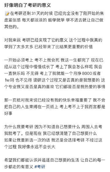 考研的意义到底是什么 考研的最大意义是充实自己的生活,重新找回奋斗的感觉,对未来也抱有期望和愿景,这对于我们来说就是最大的意义。