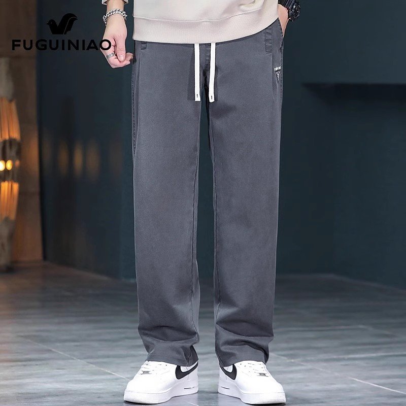 富贵鸟休闲裤男士宽松阔腿裤2024冬季新款加绒直筒裤休闲长裤子男