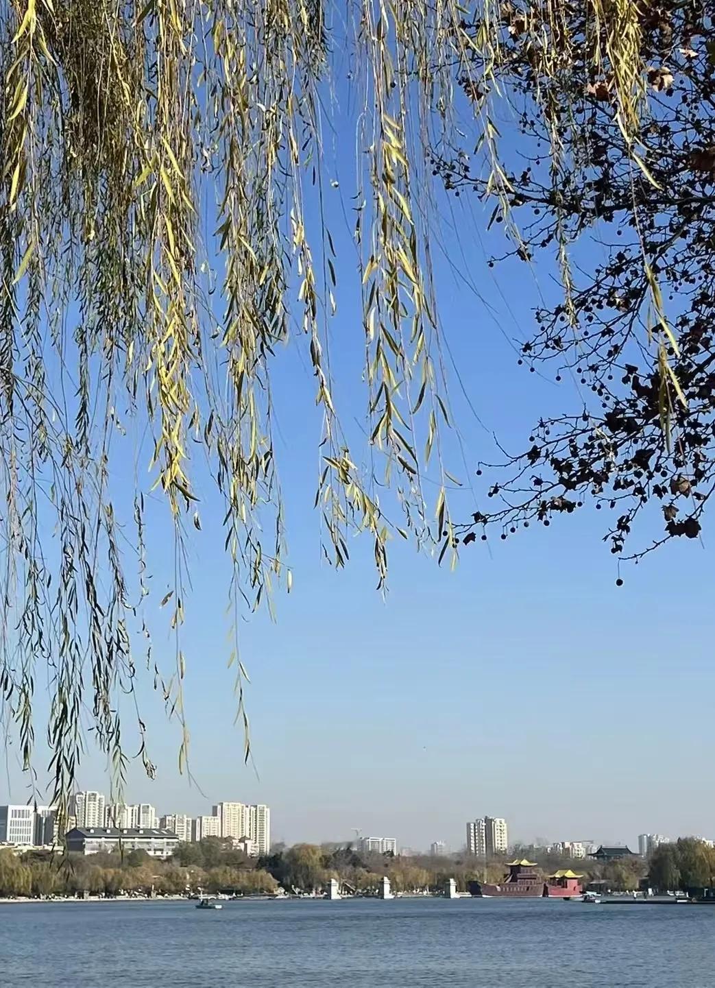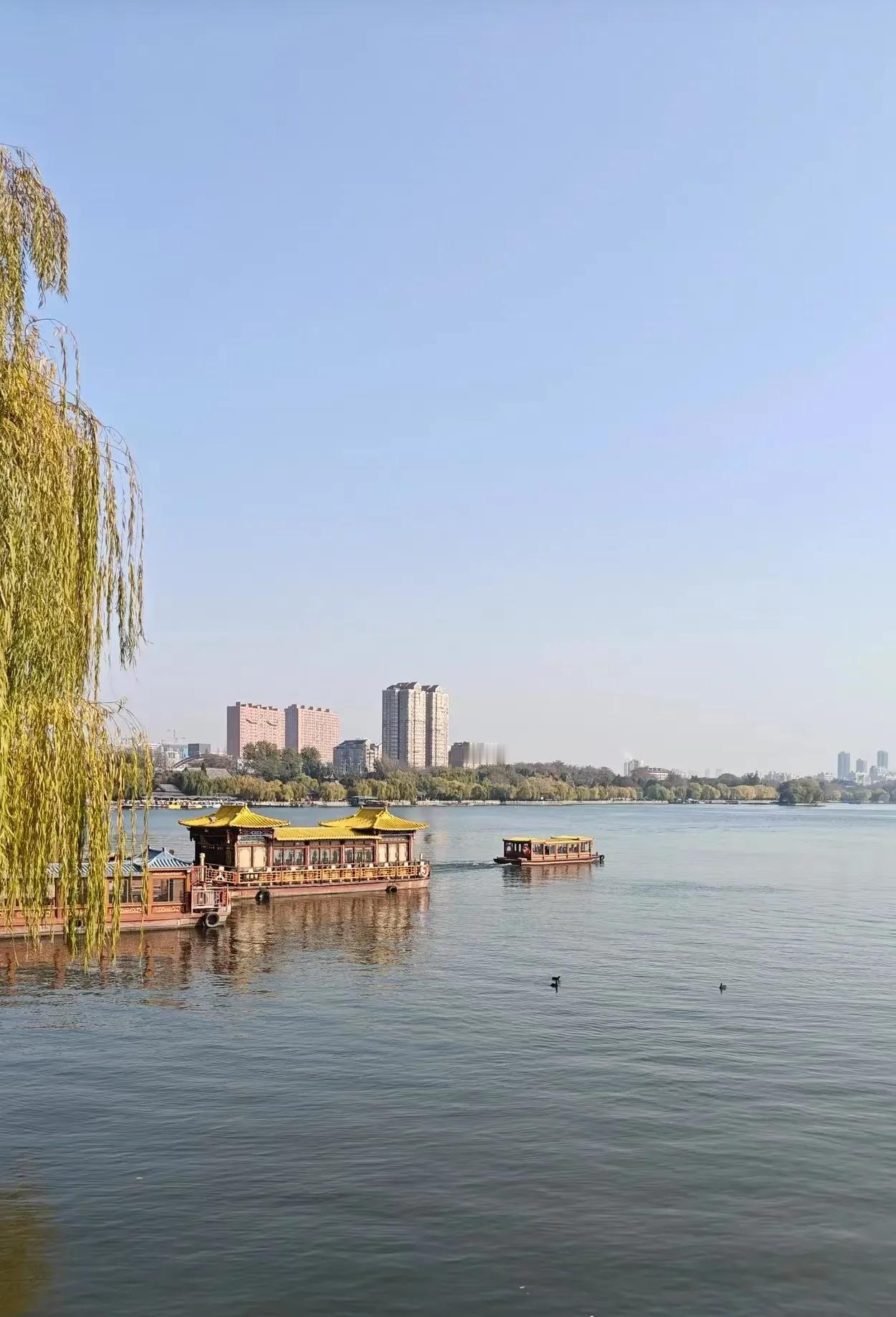 漫步济南大明湖畔,柳风轻拂,仿佛走进了画中世界。