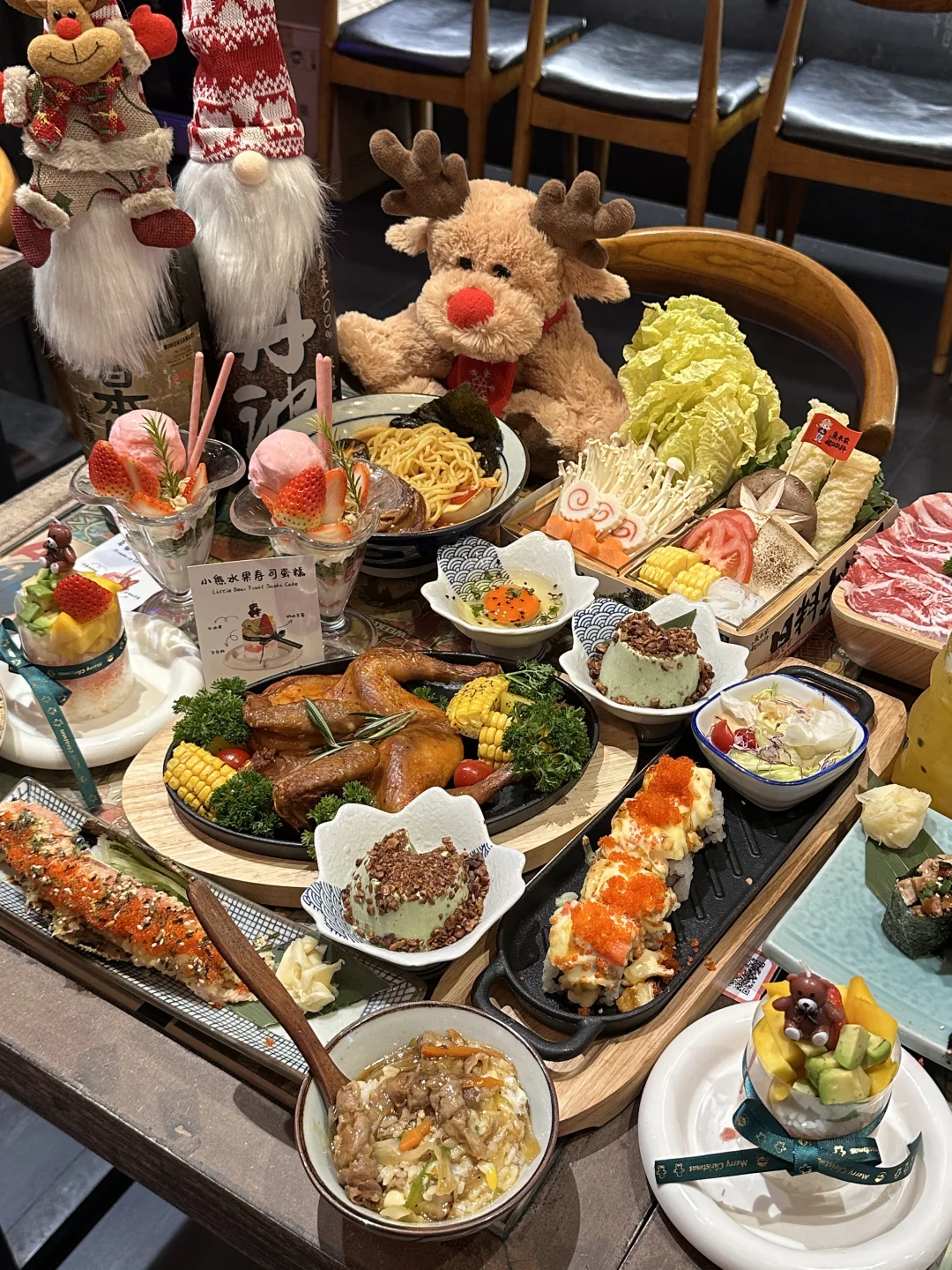 近期很爱的一家!!每周末都会和朋友一起来! 菜品都是那种好看又好吃的! 还有草莓冰激凌芭菲杯和小熊水果寿司蛋糕🍰 门口还有超大雪景圣诞树🎄 好多圣诞装饰,随便拍一张都好浪漫!!