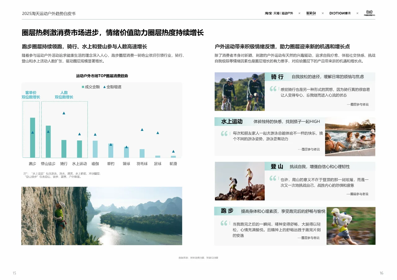 🌤️在政策、科技和大环境的共同作用下,运动户外产业稳步前行。现代用户越来越倾向于追求自我愉悦、及时行乐、拥抱自然的生活方式,这种由内而外的消费驱动力正在成为行业发展的新动力。