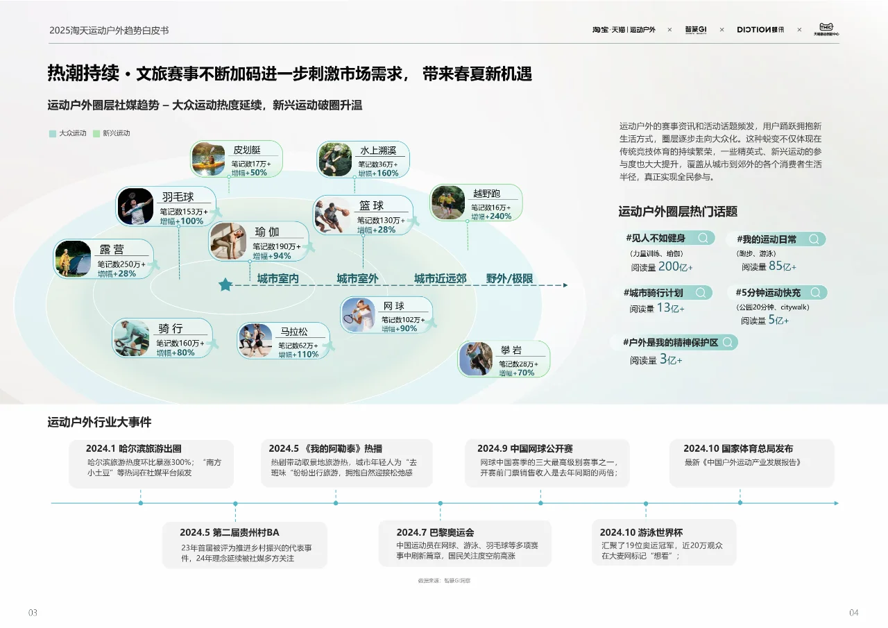 不仅是赛事和活动的增多,更是生活方式的转变。社交媒体上,大众运动的热度持续不减,新兴运动如新星般崛起,文旅赛事的加码更是为市场注入了新的活力,为春夏季节带来了无限可能。