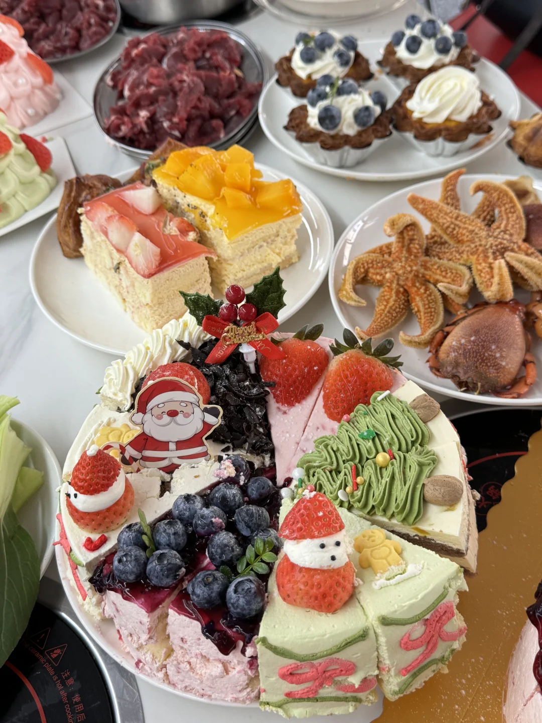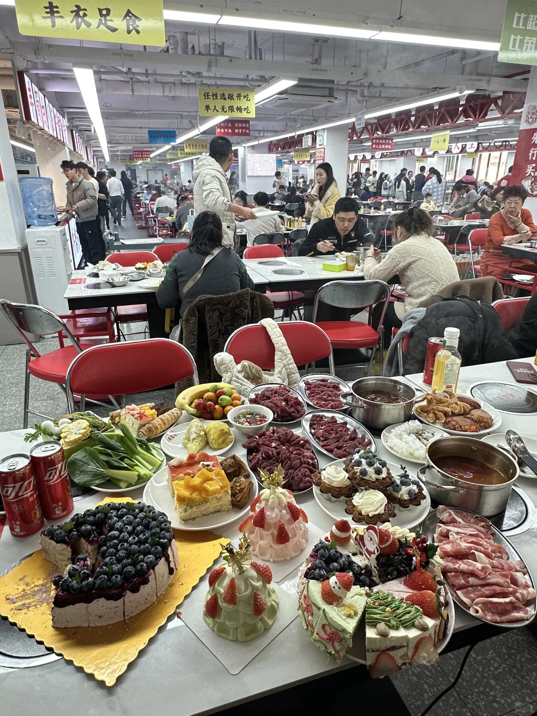 69r一位的自助火锅,海鲜和牛肉随便吃 竟然还有几十种蛋糕,老板说都是动物奶油的 真的划算哭了!!!就在新街口!!快冲!!!