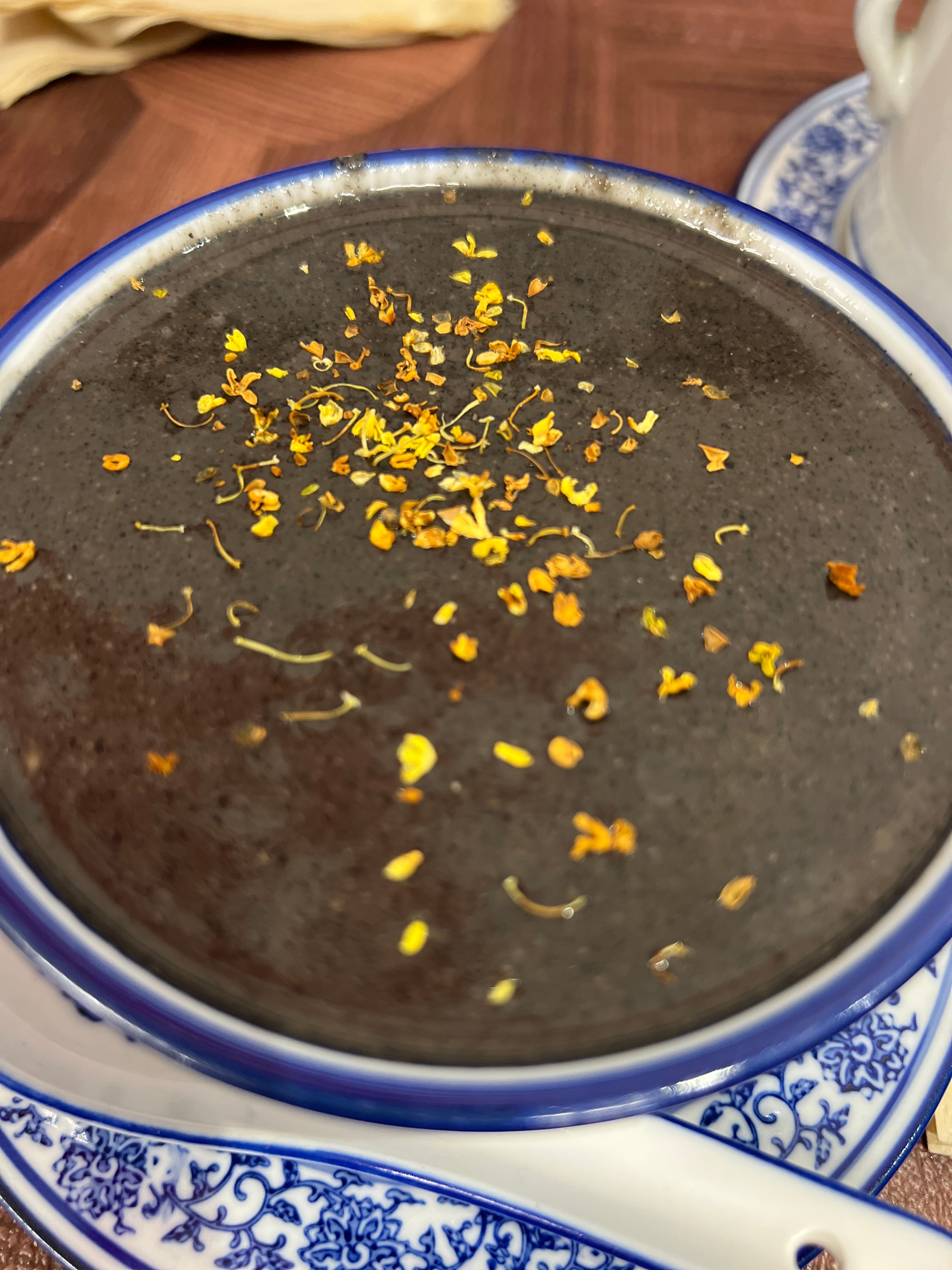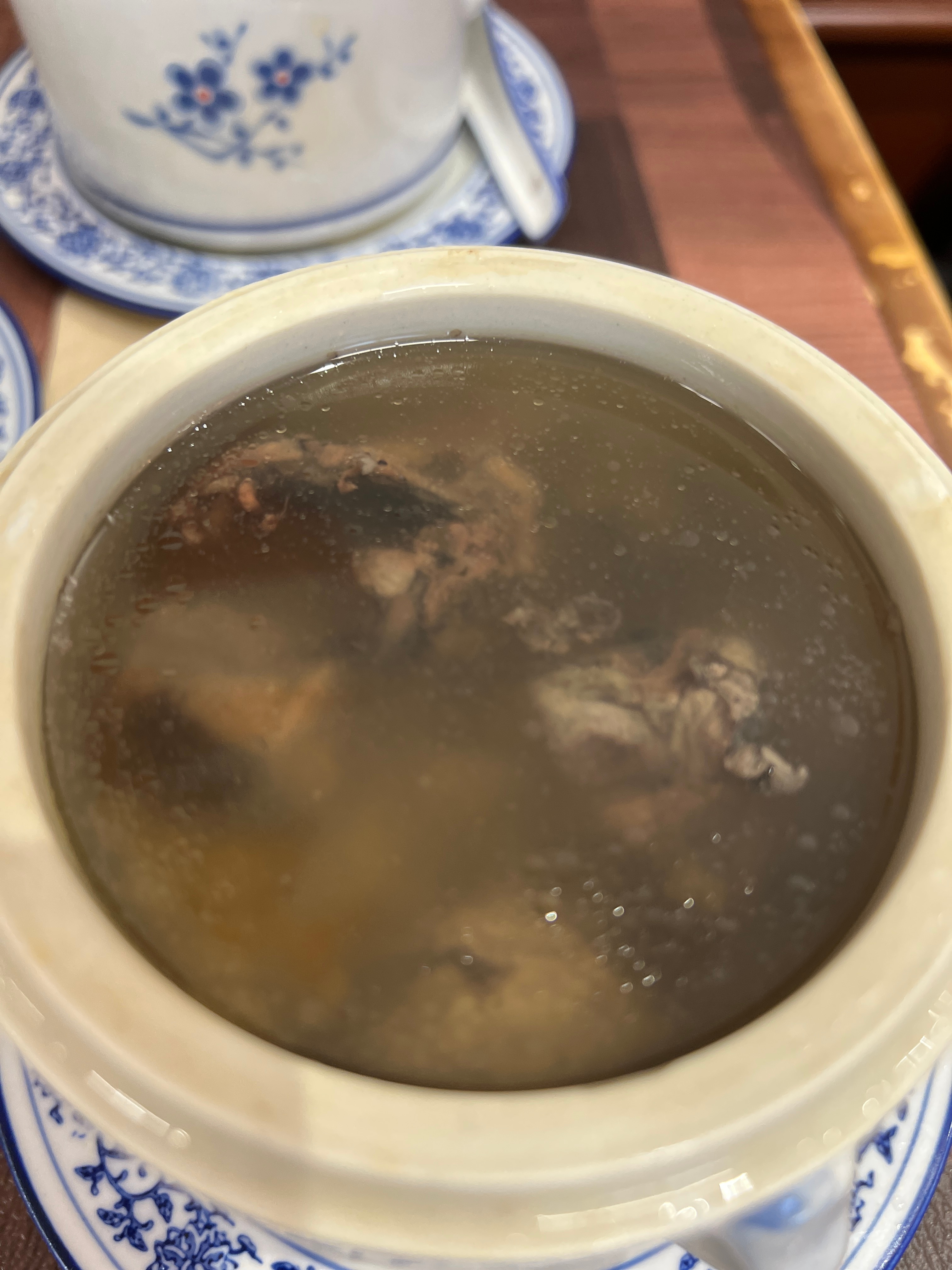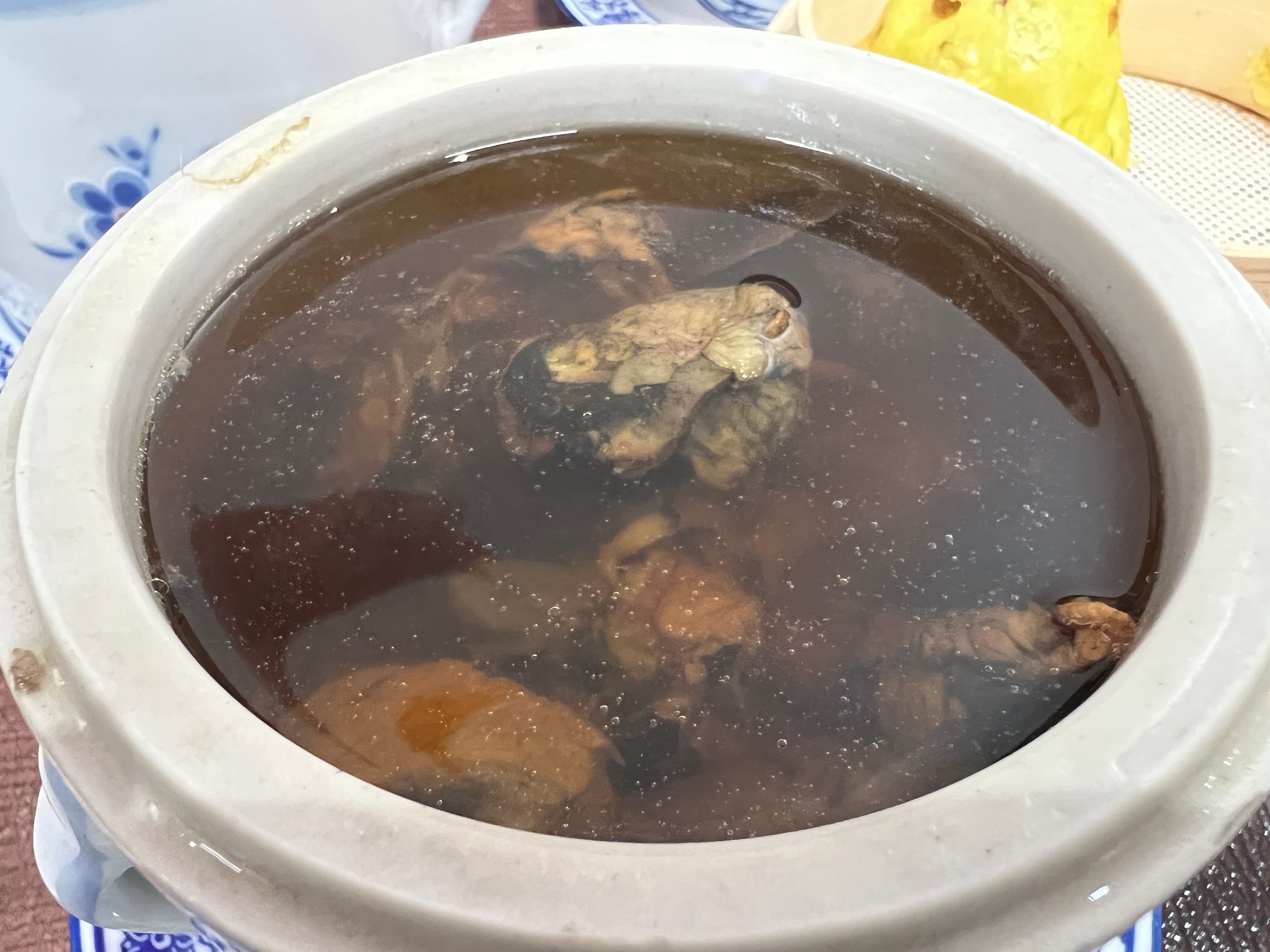 第一次吃广式苍蝇馆。当归炖老鸽,板栗炖乌鸡,笋干虾饺,黑芝麻糊。汤好喝很暖胃,量
