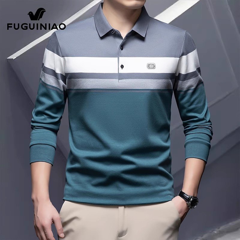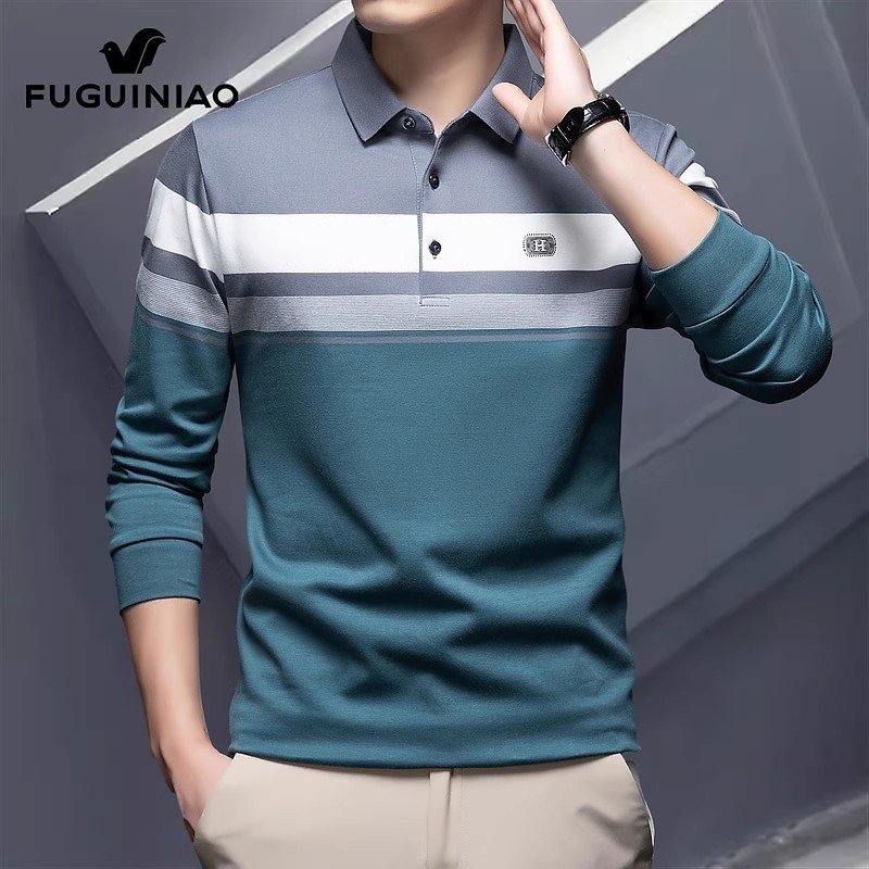富贵鸟长袖t恤男士春季2025新款高级感打底衫休闲商务polo衫男装