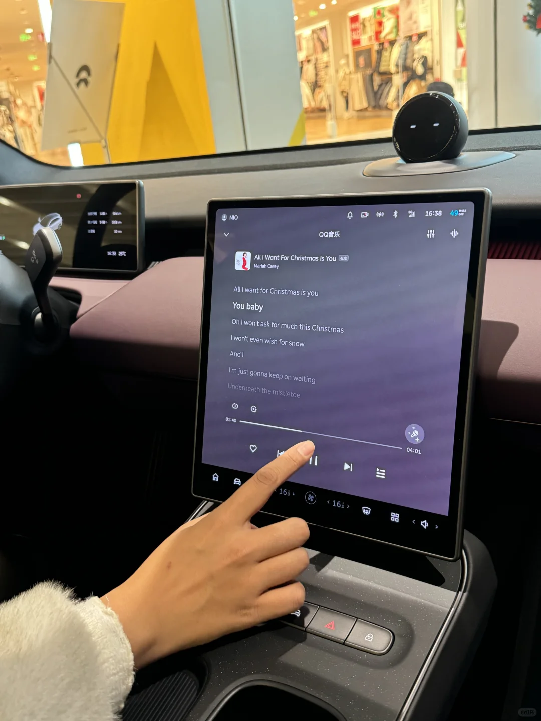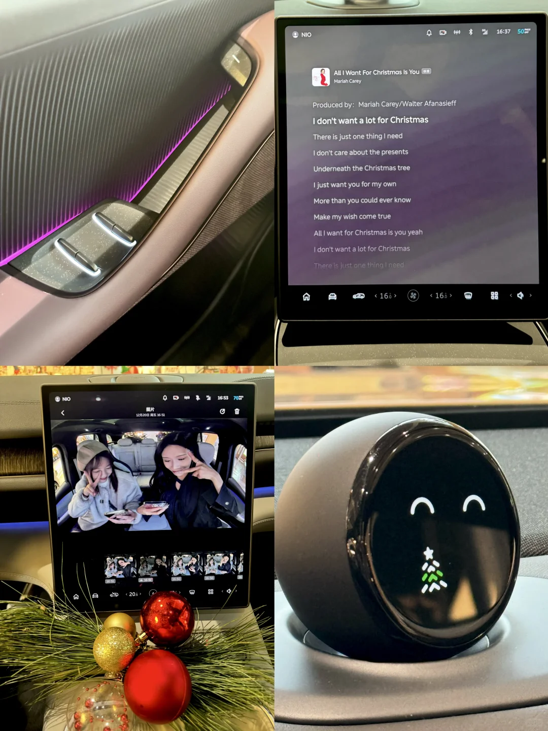 蔚来车内就是拍照📷点! 只要喊一声:Hey Nomi,我们拍张合影 然后按 Nomi 的倒计时提示,3,2,1,咔嚓!🤳🏻 🎉超有圣诞氛围的合影就到手啦~