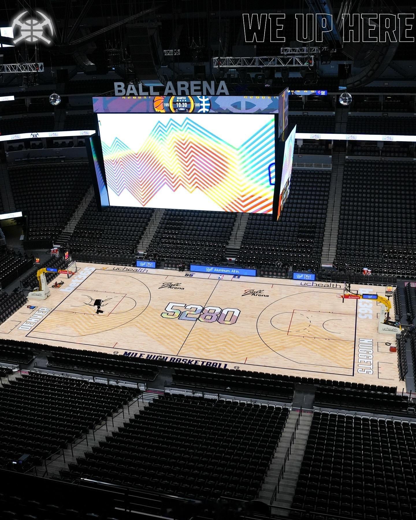 率先看看丹佛掘金的地板吧!11:00 太阳vs掘金 威少再遇杜兰特