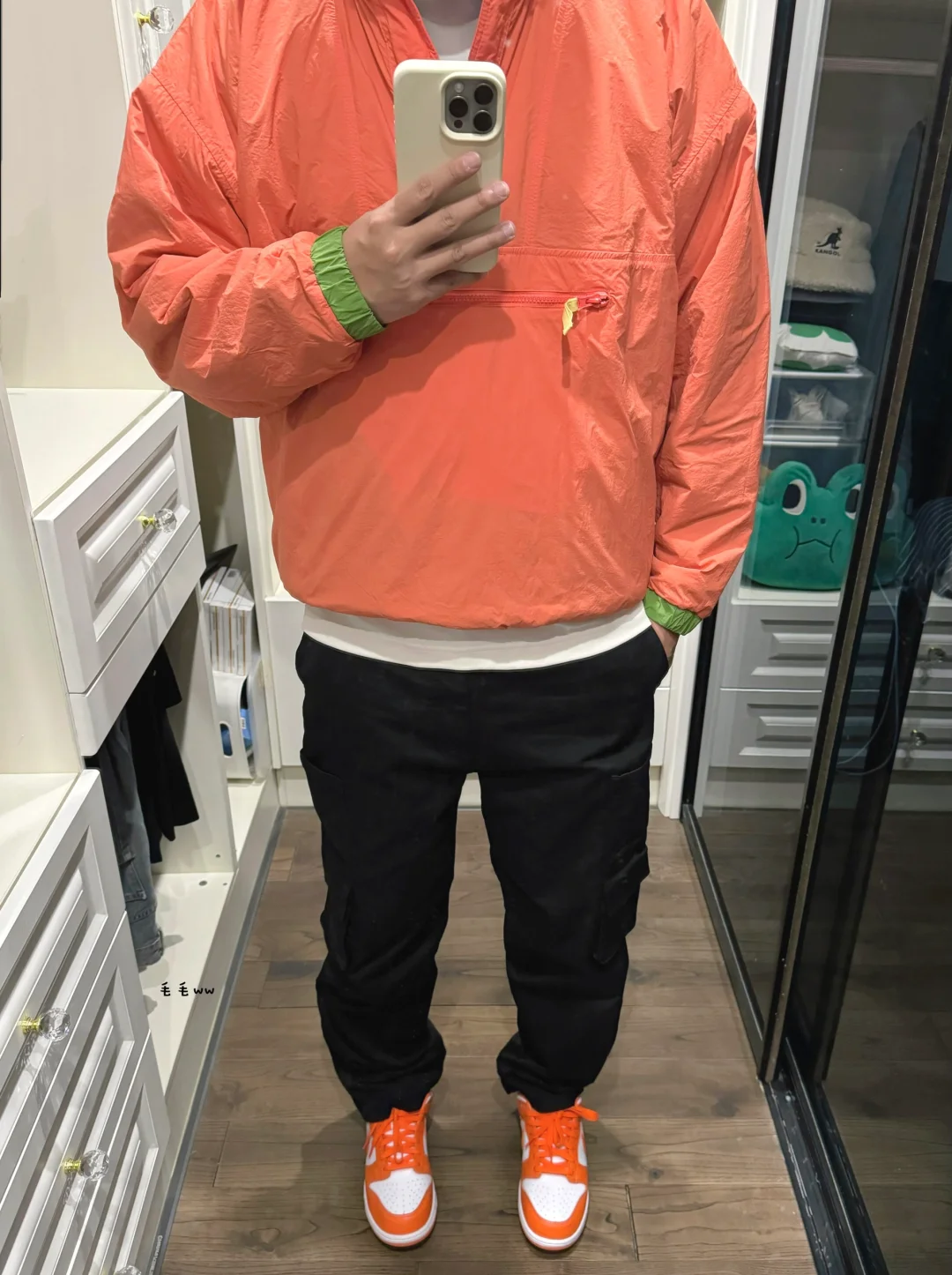 -不知不觉,跨年越来越近了,多巴胺穿搭对于过节氛围感是非常合适的 . -“大橘大利”的半拉链夹克,简单的口袋工装裤,球鞋配色上可以做出细节呼应 . —————— . ✏️本人178cm75kg 球鞋尺码265mm(正常EU42) . 💭以上均为我个人观点,不喜勿喷,欢迎讨论