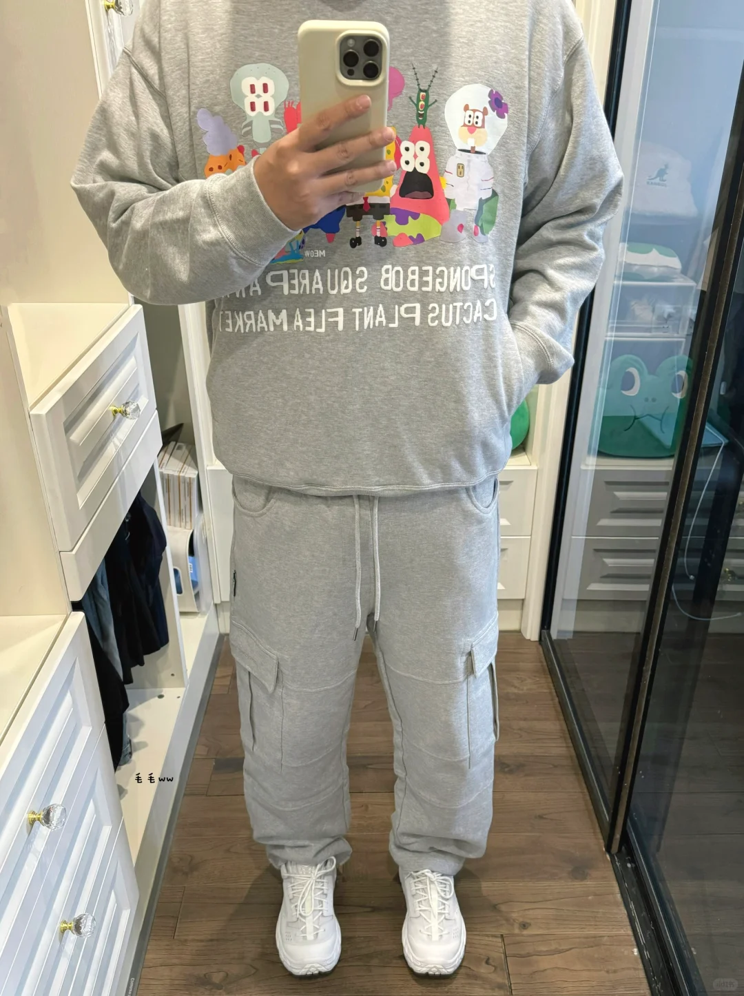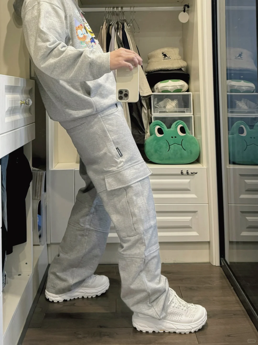 -花灰是这次合作唯一的浅色系(长袖),搭配同色裤装复古范儿拉满 . -穿腻了束口卫裤,试试工装版型,辨识度高的同时,搭配鞋款的选择更多 . —————— . ✏️本人178cm75kg 球鞋尺码265mm(正常EU42) . 💭以上均为我个人观点,不喜勿喷,欢迎讨论