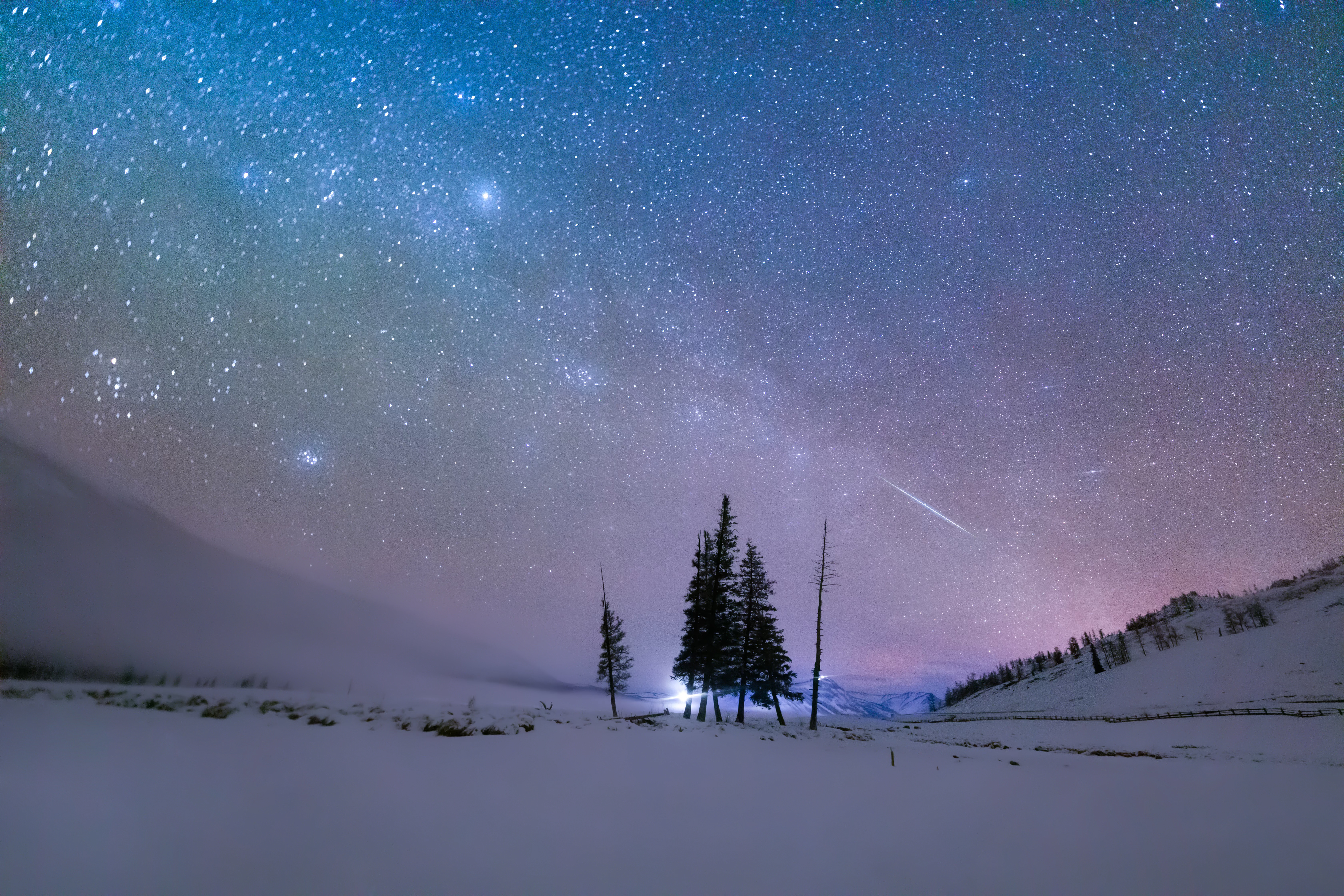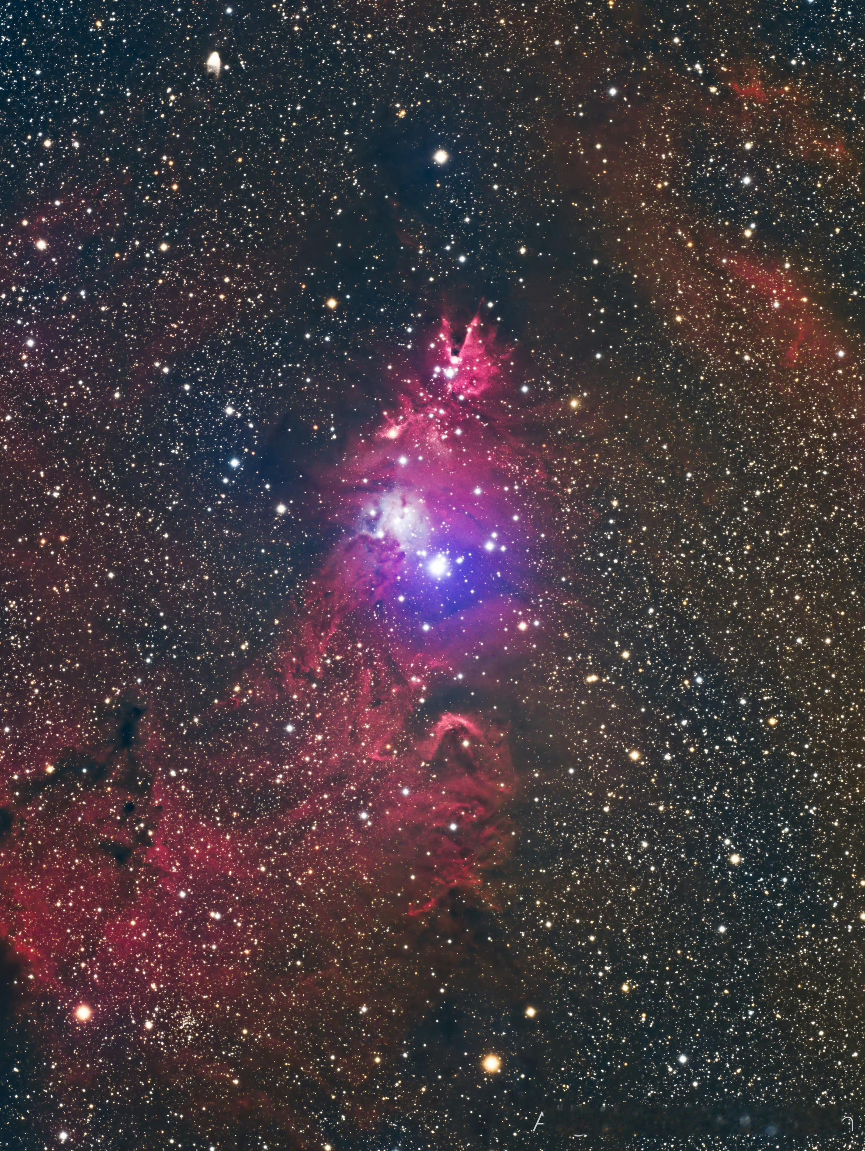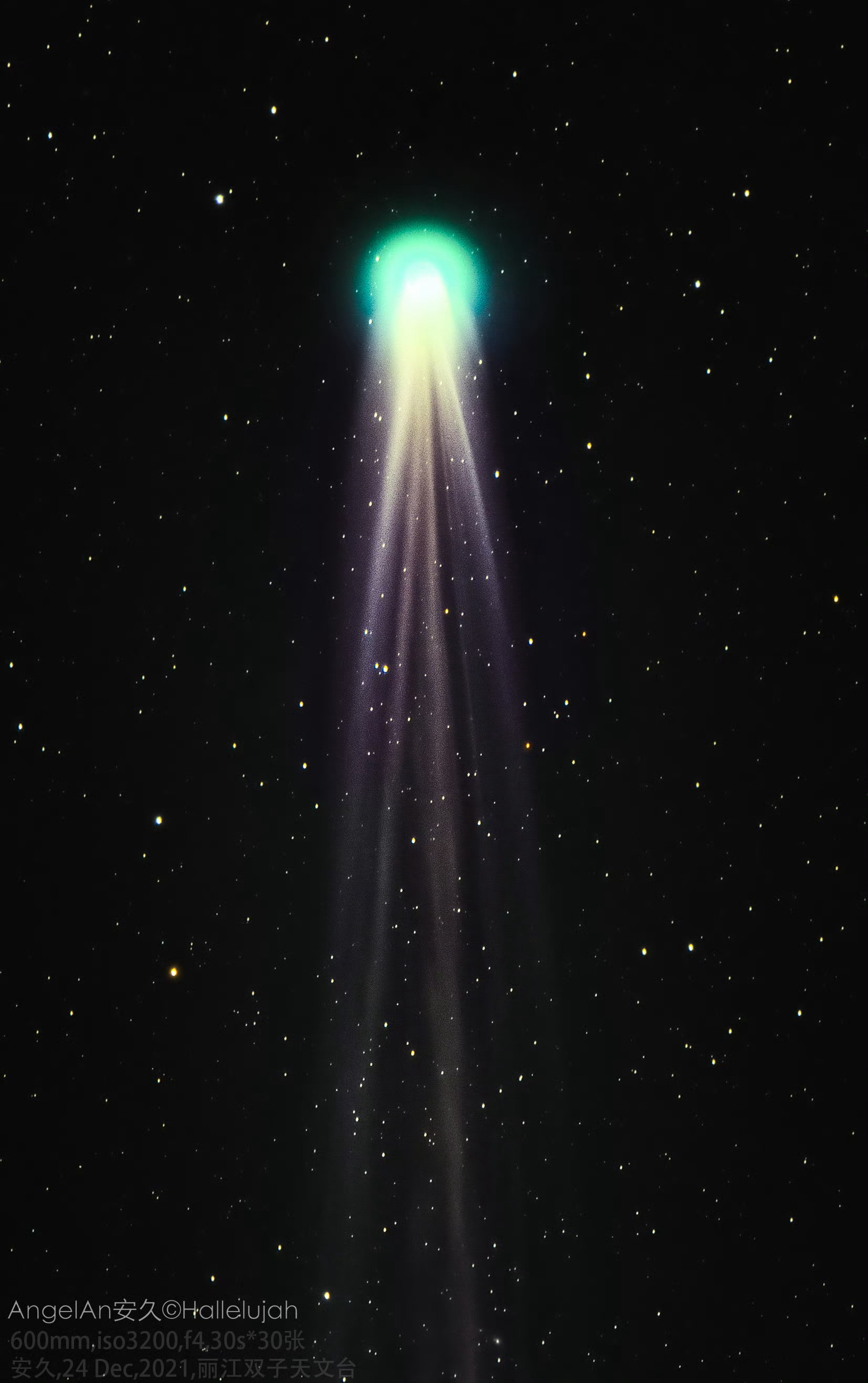 在平安夜前夕拍到了世界上最大的圣诞树(星团),那是距离地球2600光年的一片超过30光年的空域,也在圣诞节与穿越约8万年的“伦纳德”圣诞彗星相遇,当记录着流星划过树冠,我也想传颂着上帝给天文爱好者的贺礼。