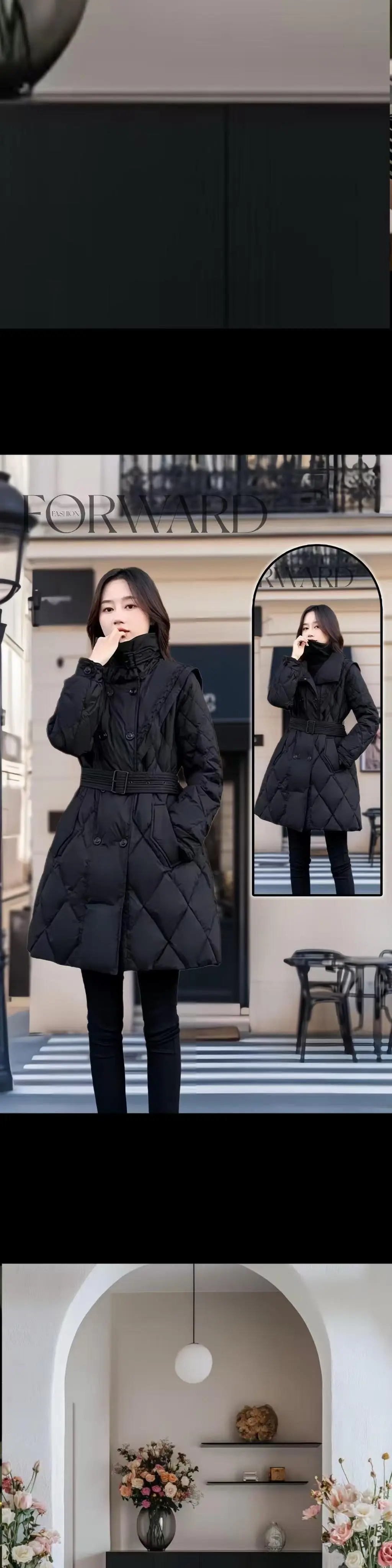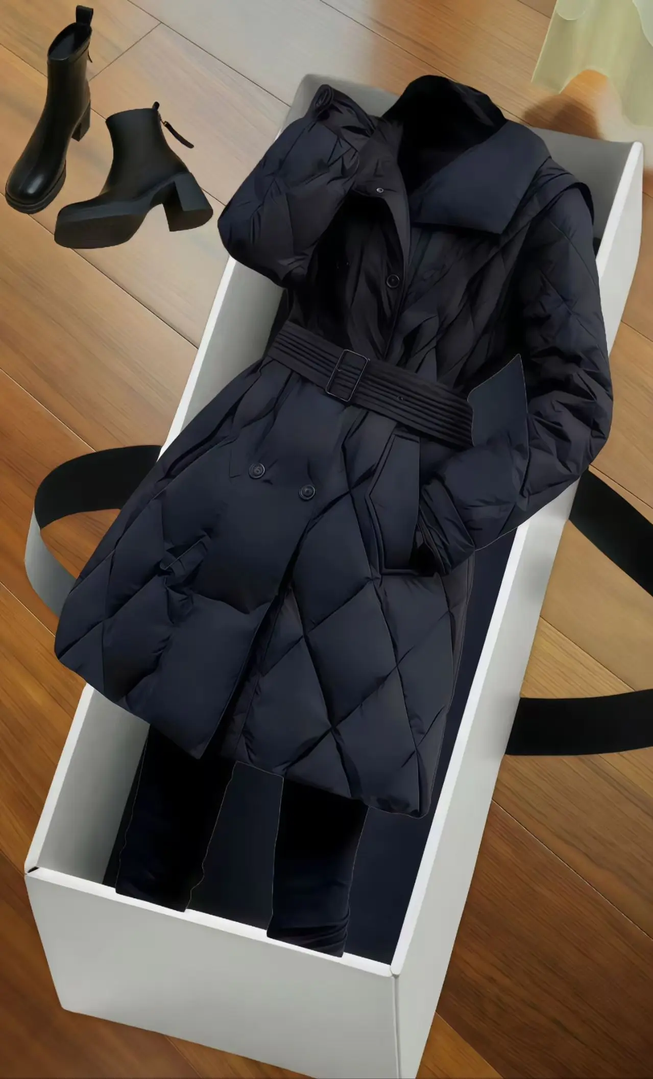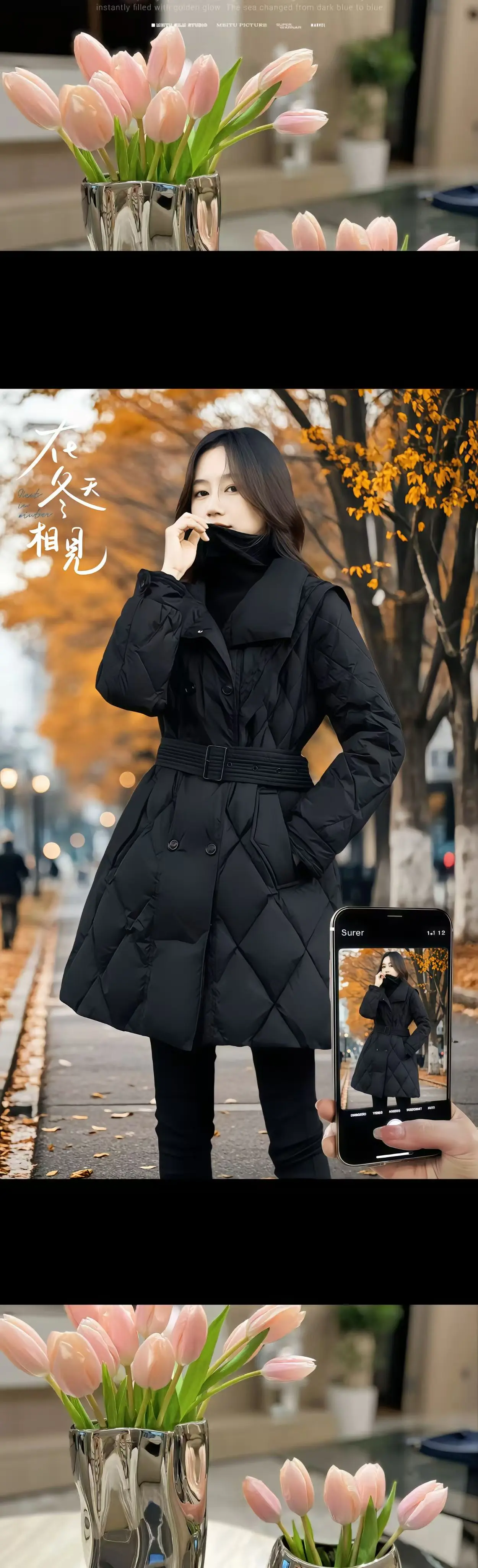 这件棉服上身嘎嘎好看!修身的版型恰到好处地勾勒出身材曲线,视觉上拉长身形,秒变大长腿。海军领的设计更是巧妙,瞬间增添了几分俏皮可爱与时尚感,让整体看起来洋气又不单调。而且它还是收腰绑带的,轻松打造出小蛮腰,展现出女性的柔美。黑色经典又百搭,不管是搭配牛仔裤打造休闲风,还是配上裙子营造甜美风,都毫无压力。