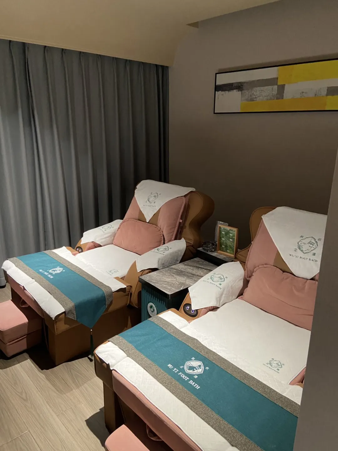 每天都是特种兵的一天🥹 周末终于闲下来有时间去享受一下了!! 又又又来到了我的快乐老家 就在国金附近!!步行几分钟就到了 逛街逛累了可以直接来按摩💆 技师的按摩手法很舒服!! 按着按着我都睡觉了💤 小吃无限量➕电影➕按摩➕智能控制➕🆓寄存行李➕29r可以过夜!! 她家的是带独卫的!!真的很放心~ 一次性的卫生洗漱用品 暖暖的很贴心 前台夜景🌃很漂亮 能看见国金下面的打卡墙!!🥰