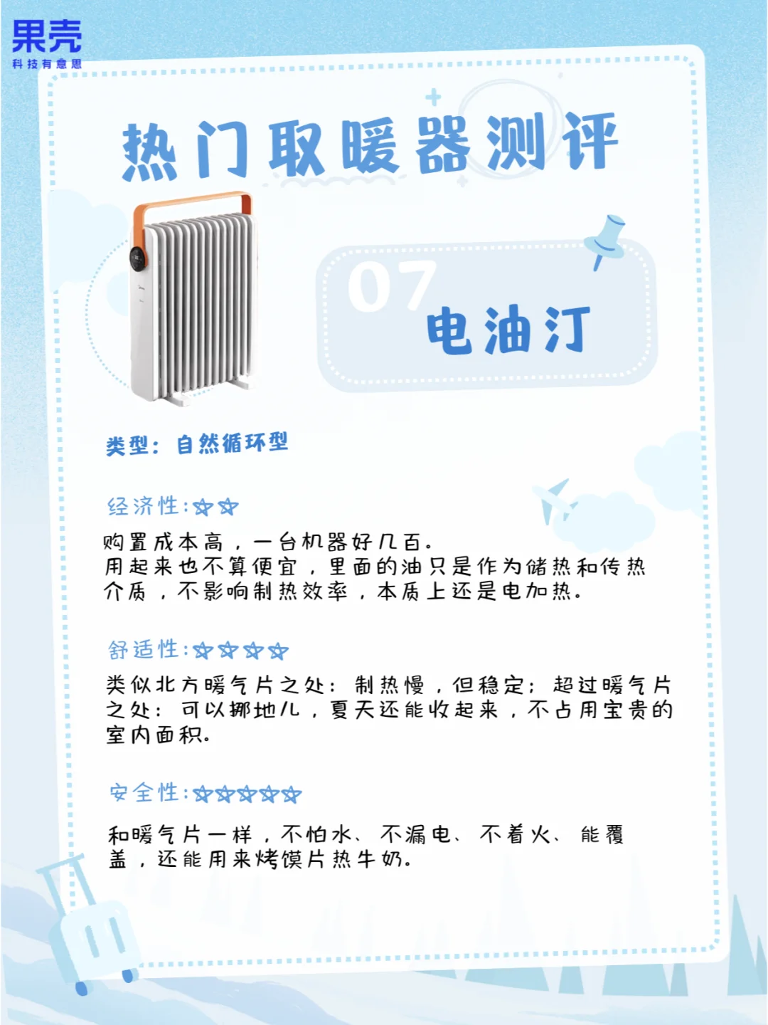 选择困难症可以入手电油汀、暖风机,大房间小房间都比较适合。