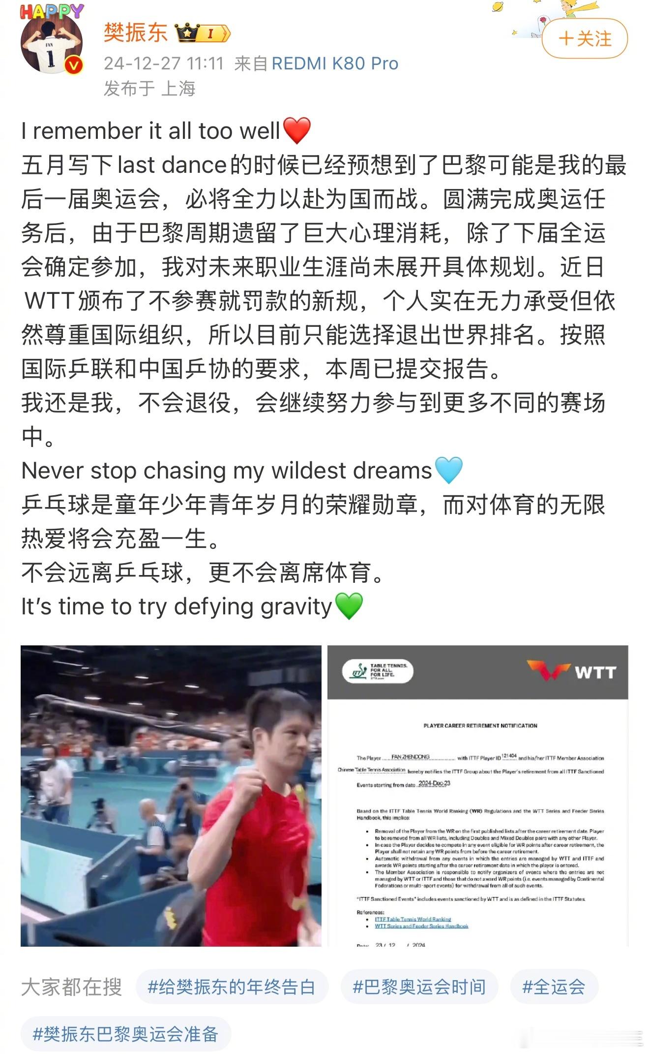 陈梦、樊振东都宣布退出世界排名了。