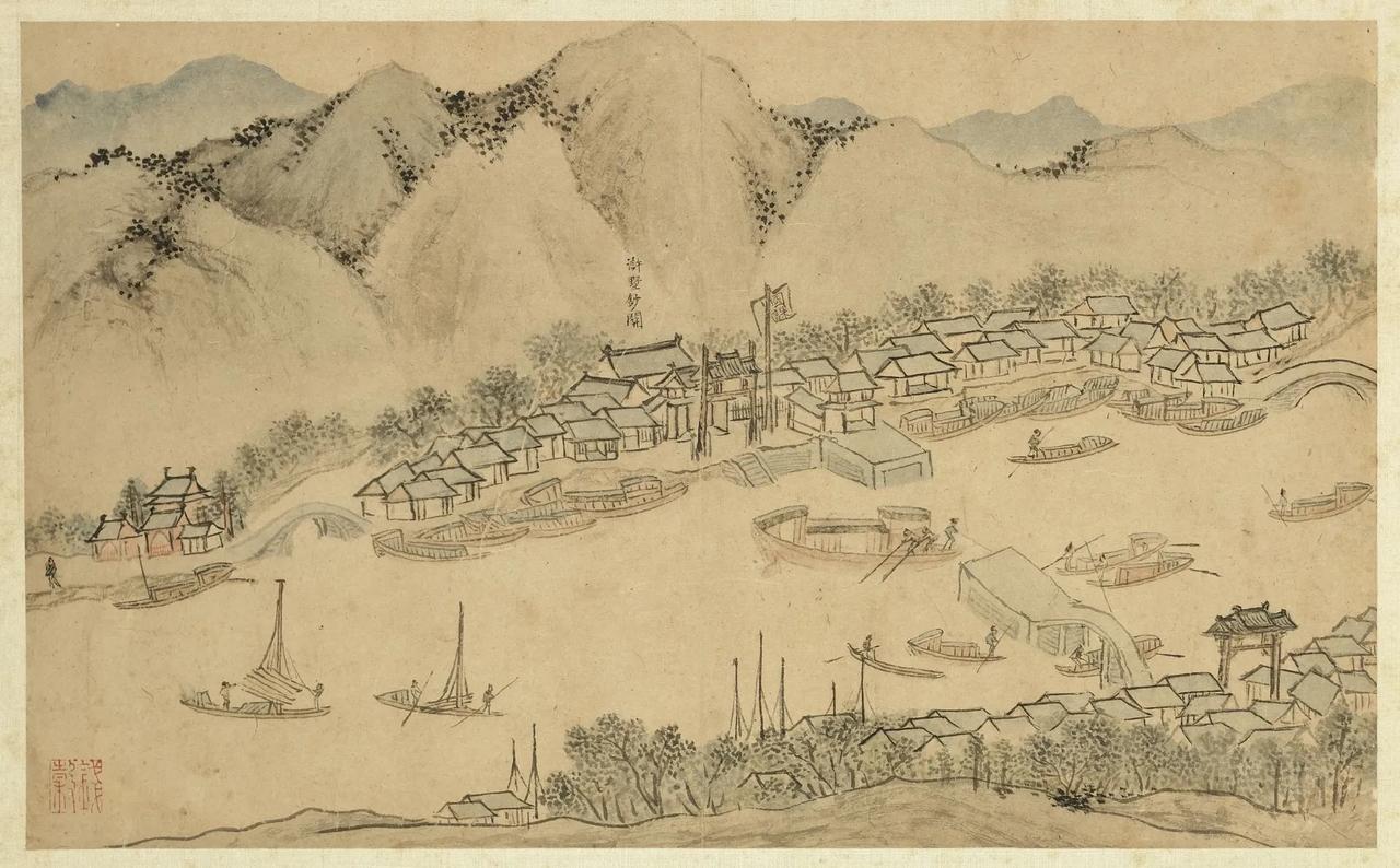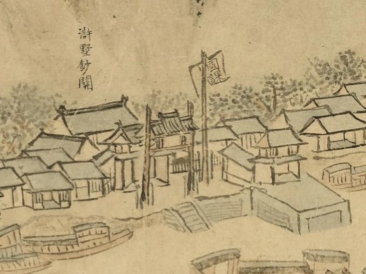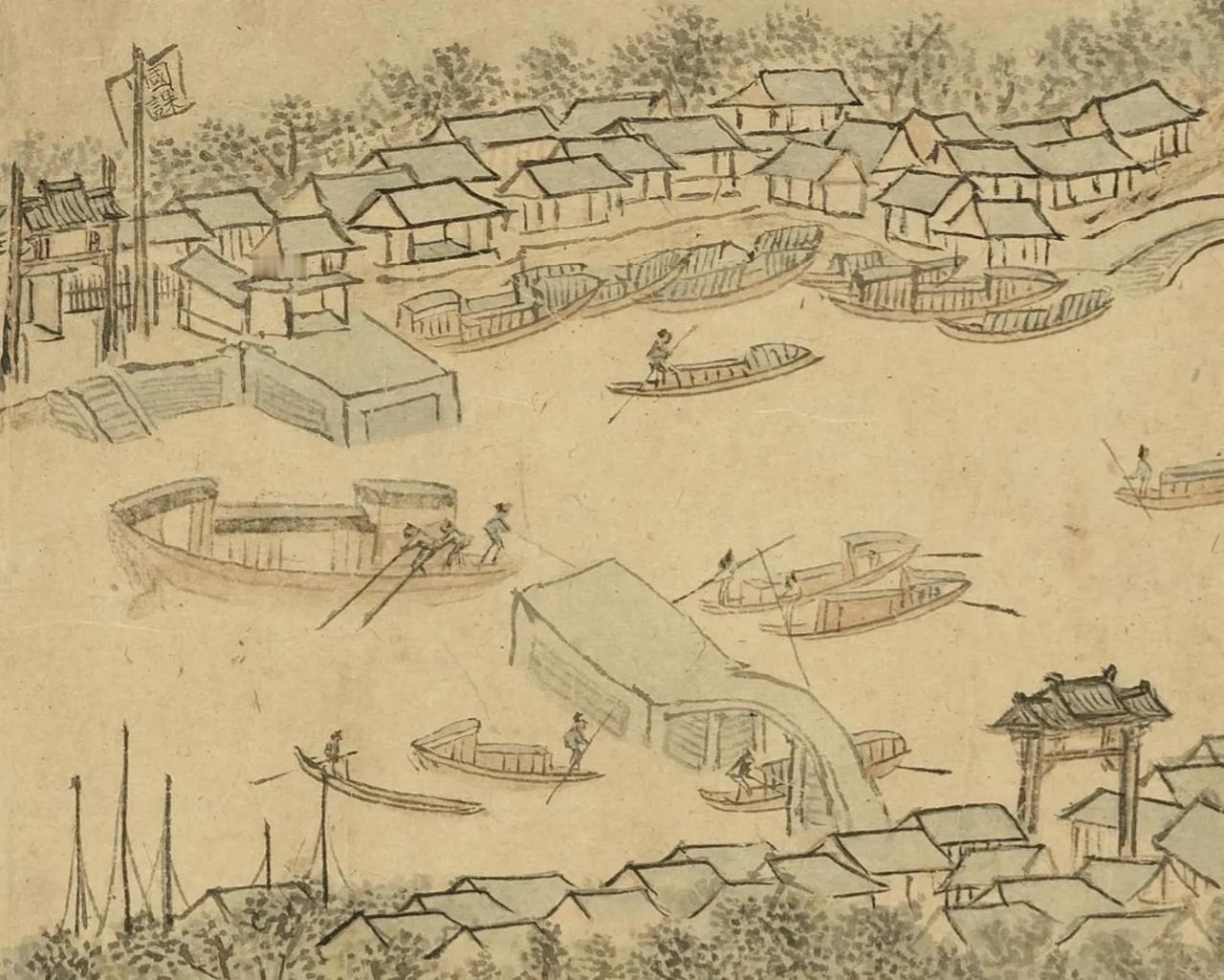 这是在为大明王朝征税呀,所以叫“国课”。这是明代京杭大运河重要钞关之一:浒墅关。浒墅关在苏州附近。钞关就是明政府征收过税的关口,原来规定过往船只用大明宝钞纸钞来交税,但是大明宝钞没有底线,发行过滥,贬值严重,后来被迫钞钱兼收,最后全部改为征收白银。明代前期临清钞关是第一大关,后期浒墅关是最大的钞关。