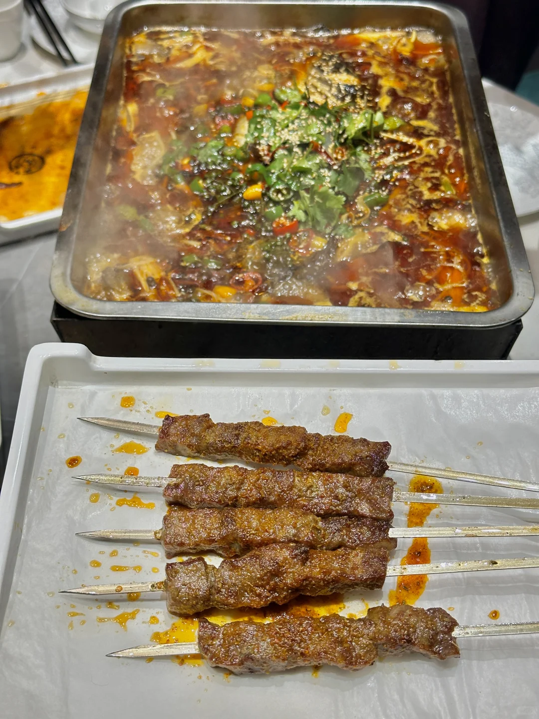 感谢本地人带路🥹这家烧烤也太好吃了 尊嘟是云龙区袁桥附近宝藏烧烤店 不允许有人还不知道! 他们家的店面超级大!干净又敞亮!氛围感拉满了,来这吃饭跟回家一样🥰 答应我来了一定要点他们家的招牌碳锅烤鱼啊😭😭尊嘟很jue! ✔推荐招牌羊肉串,肉串很大,能吃出来都是好肉hin新鲜,白串就惊艳到我了 🤤我们还点了鱿鱼🦑嘴、脆皮臭干、面包片🍞、雪花牛肉串… 撑到扶墙出!! 越吃越香,真的夜越深人越多…