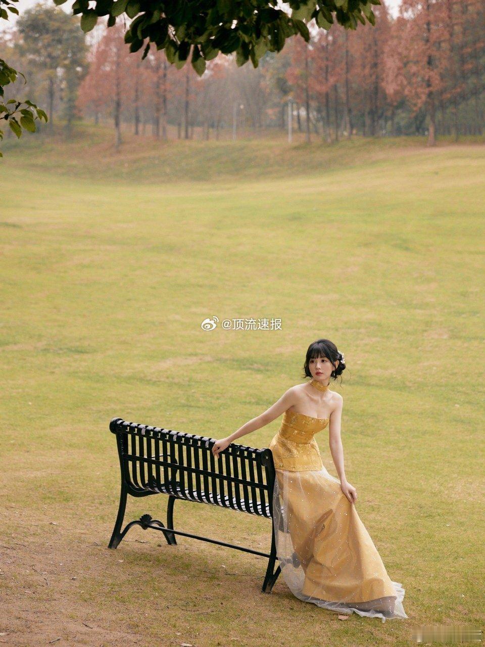 刘亦菲这一身衣服太丑了,用花挡住了才觉得好一点,全靠脸撑着
