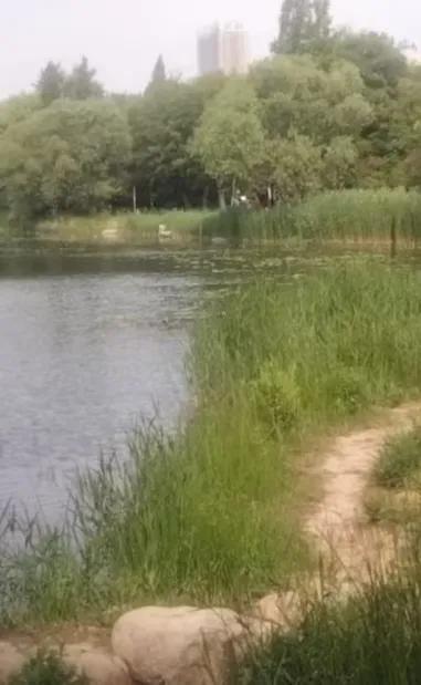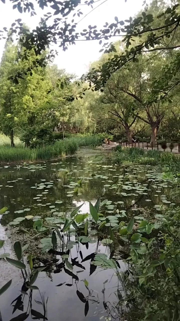 饭后漫步, 公园的景色如画, 心情也随之明亮。 库存的,济南森林公园