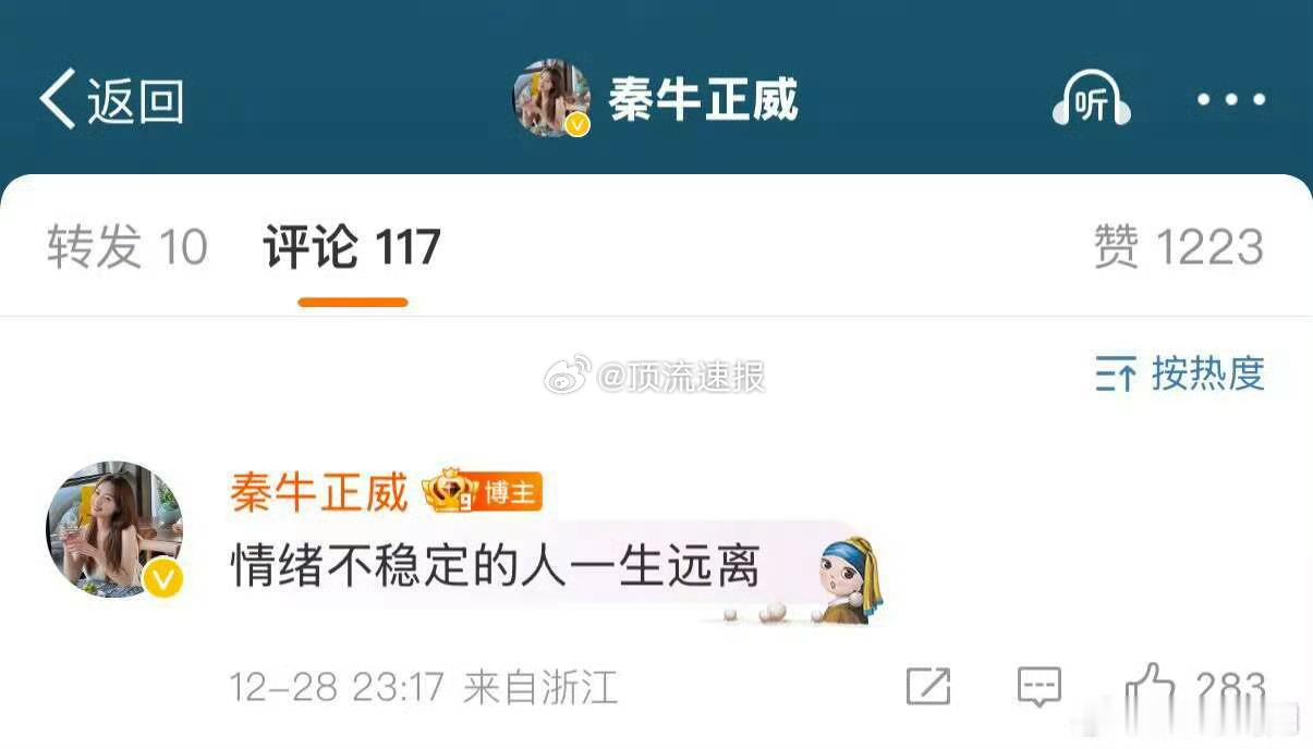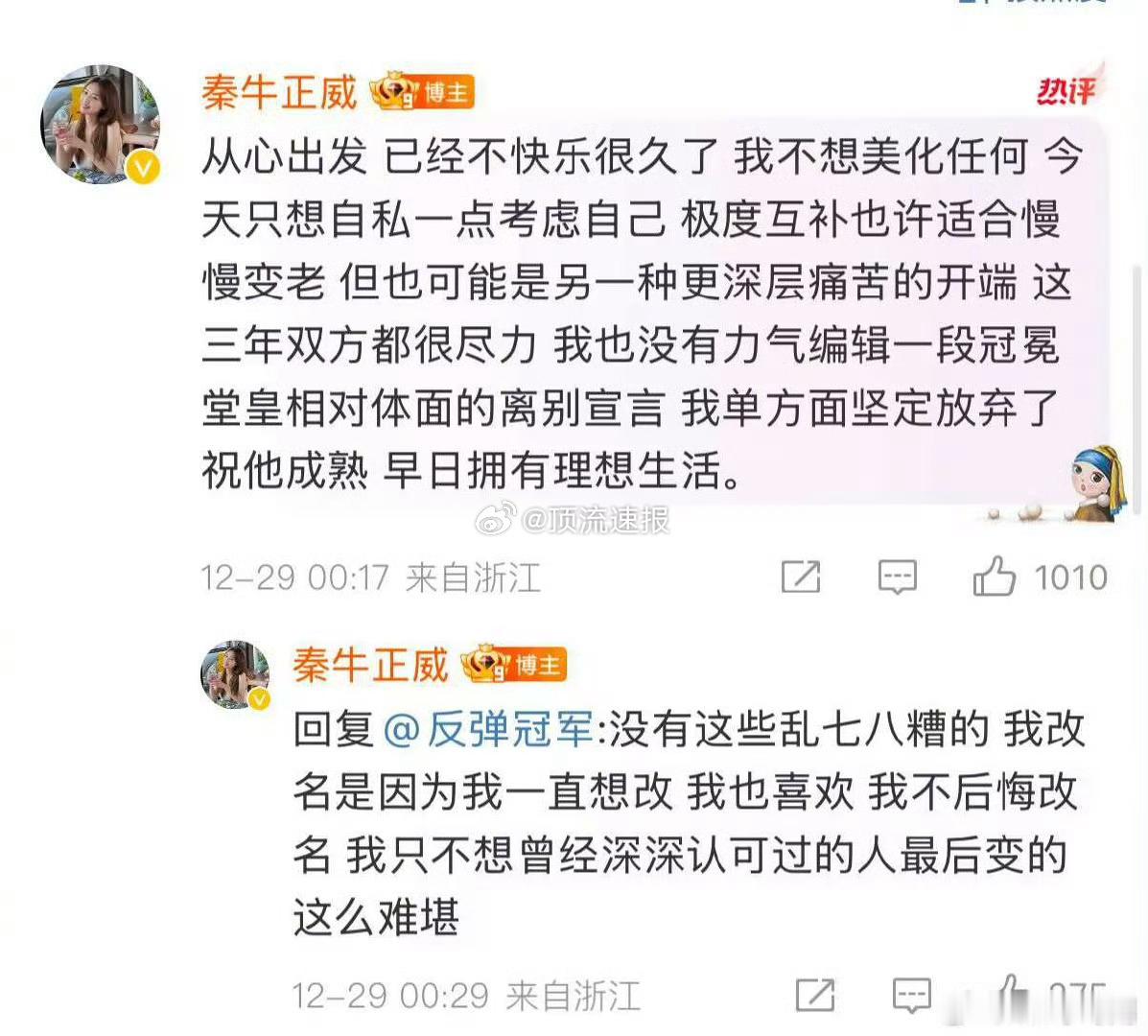 秦牛正威分手说“受够了”,“情绪不稳定的人一生远离”,“已经不快乐很久了”,所以