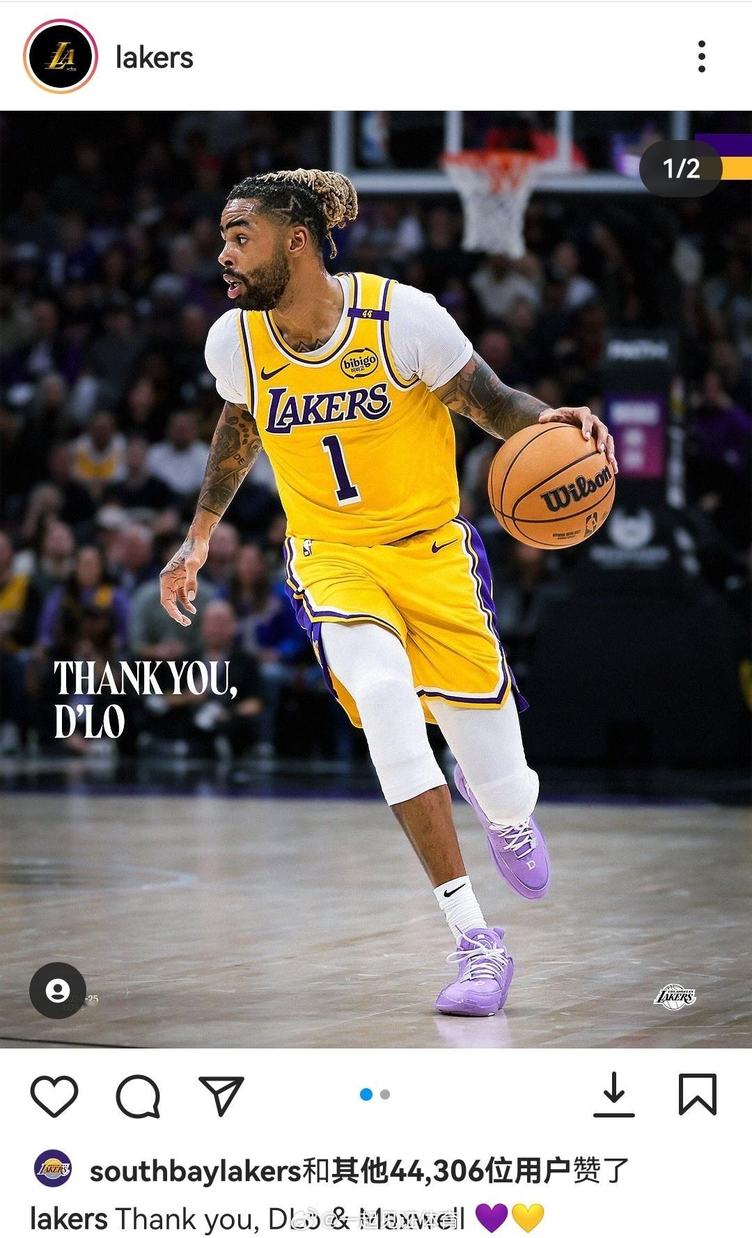 湖人官方再次发感谢拉塞尔刘易斯的图片