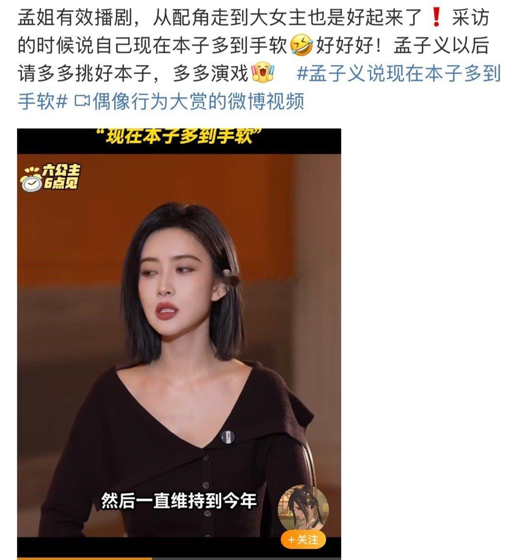 孟子义采访好真诚“现在本子多到手软”《九重紫》绝对是孟姐的有效播剧了,你最期待孟子义演什么类型的角色?