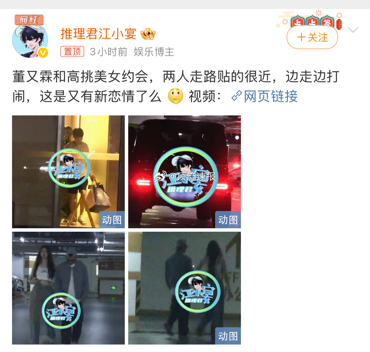 🍉狗仔曝董又霖和高挑美女约会,两人走路贴的很近…董又霖恋爱了吗[举手]?
