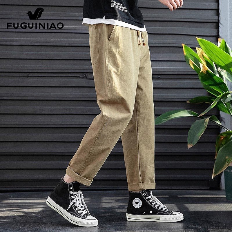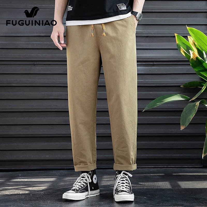 富贵鸟纯棉休闲裤男士小脚九分裤2025春季新款潮流宽松长裤子男款