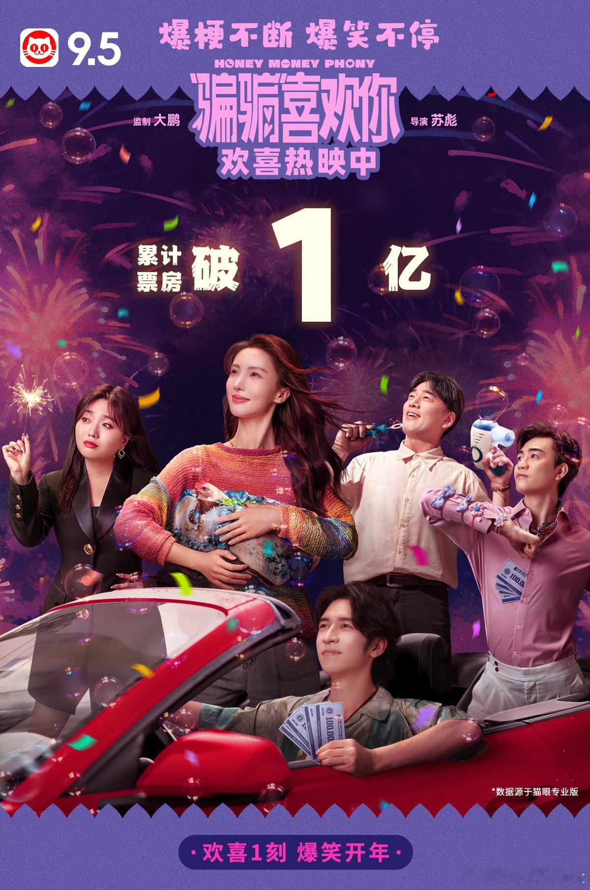 骗骗喜欢你票房破亿 喜剧爱情电影《“骗骗”喜欢你》累计票房破亿,影片将喜剧类型与爱情元素巧妙融合,给大家带来好笑好嗑的观影体验,泡泡烟花的特殊场次也仪式感满满,让观众在爆笑中浪漫跨年。观众认为“这是一部很解压的爱情爽片,开心的同时还了解到了渣男套路”。影片由大鹏监制,苏彪执导,金晨、孙阳、李雪琴、王皓、王耀庆领衔主演,欢喜热映中,爆梗不断,爆笑不停!