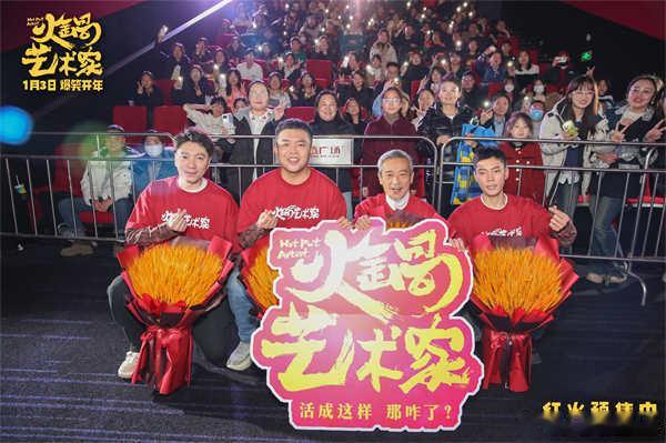 火锅艺术家鞍山路演快乐送到家门口 喜剧《火锅艺术家》12月31日于鞍山举办路演活动,领衔主演崔志佳、张琪,主演李昆鹰、刁标四位主创现身影院惊喜化身“检票员”,与观众零距离互动送欢乐,引得现场老铁纷纷合影留念。映后互动环节,东北老乡持续奉上好评,更有观众自带横幅真情应援,称赞“全员纯笑战士,爆梗不带重样的”“98分钟满满的快乐”“笑点密度很高,在年末给了我最纯粹的快乐”。鞍山市文旅局副局长朱晓霞惊喜现身映后现场,为主创送上当地特色非遗岫岩剪纸和岫岩玉以示支持,称赞“电影笑点满满,年轻人对梦想的追求和执着特别让人感动”。影片全国点映已开启,一起看爆笑喜剧,开年抢先乐! 喜剧火锅艺术家路演包好笑 电影火锅艺术家 由崔志佳执导,崔志佳、张冠男编剧,崔志佳、焦俊艳、张琪领衔主演,于洋、李昆鹰、刁标主演,宋小宝、乔杉特邀出演,魏翔、艾伦、孙越、文松、潘斌龙特别出演,张一鸣、张子栋、修睿、衣云鹤、卜钰、李会长、王喳喳、古筝友情出演,将于2025年1月3日全国上映,正在红火预售中。