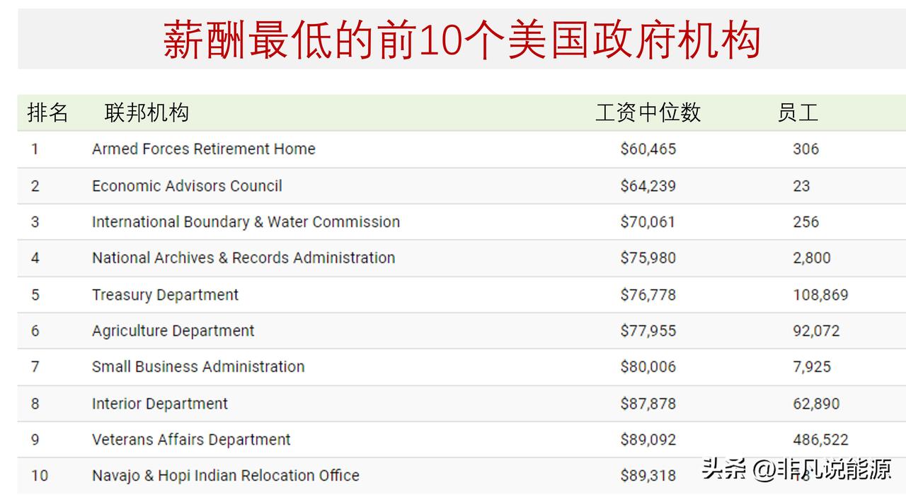 在美国当公务员,哪些机构的收入最高?哪些机构的收入最低? 如今,一些薪酬最高