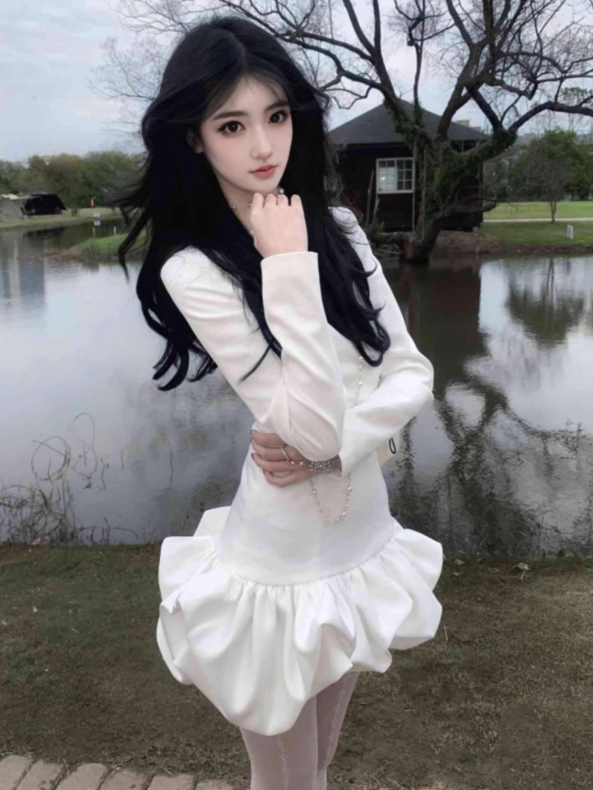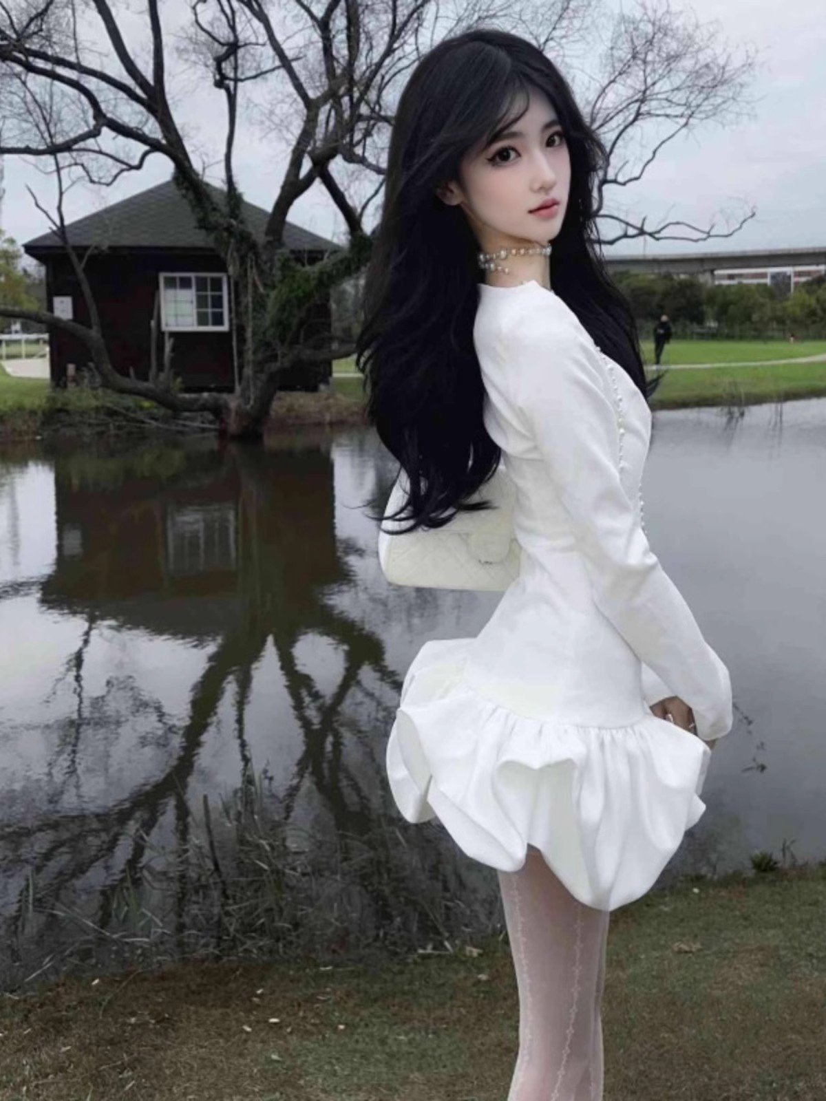 法式白色富家千金连衣裙女冬季高级感内搭